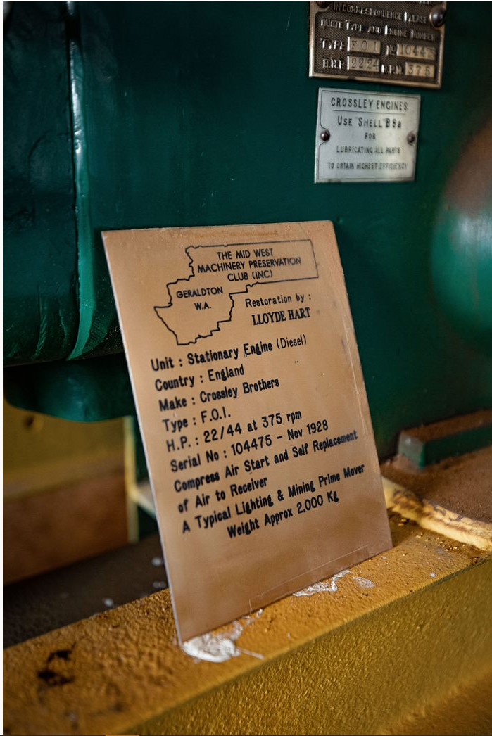 Restored. Compressed air start. Unable to find any more data. TYPE F01 DIESEL NUMBER 104473 BHP 22/24 RPM 375