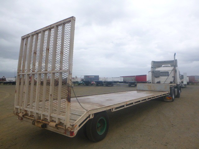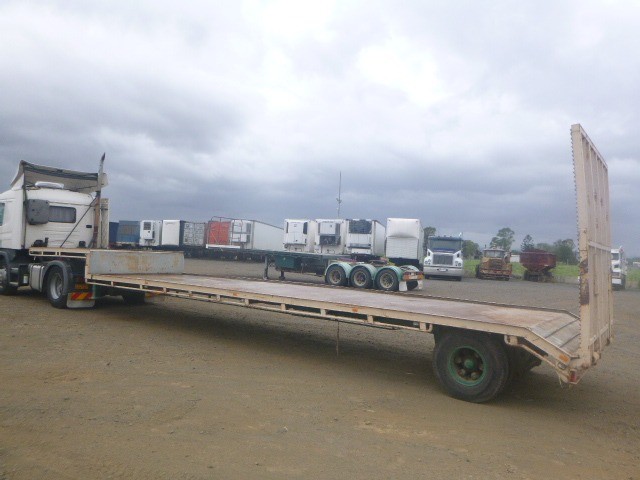 Stock Ref # 2948. 1974 Model Homemade drop deck trailer. Bottom deck: 29' 8" Top Deck : 9' 10"