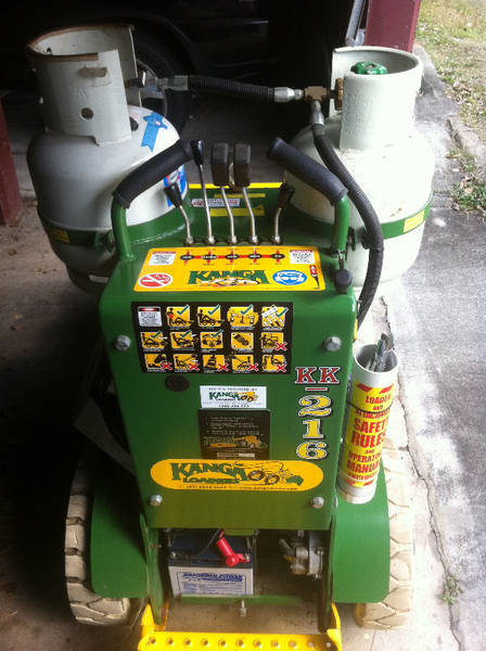 2007 KANGA KK2161AJAA As new 45 hrs on clock. Setup for external (Black water tyres x 5) and Internal (White non-marking tyres x 4). Indoor/outdoor use. stripper attachment remove floor coverings like vinyl, timber ceramics.