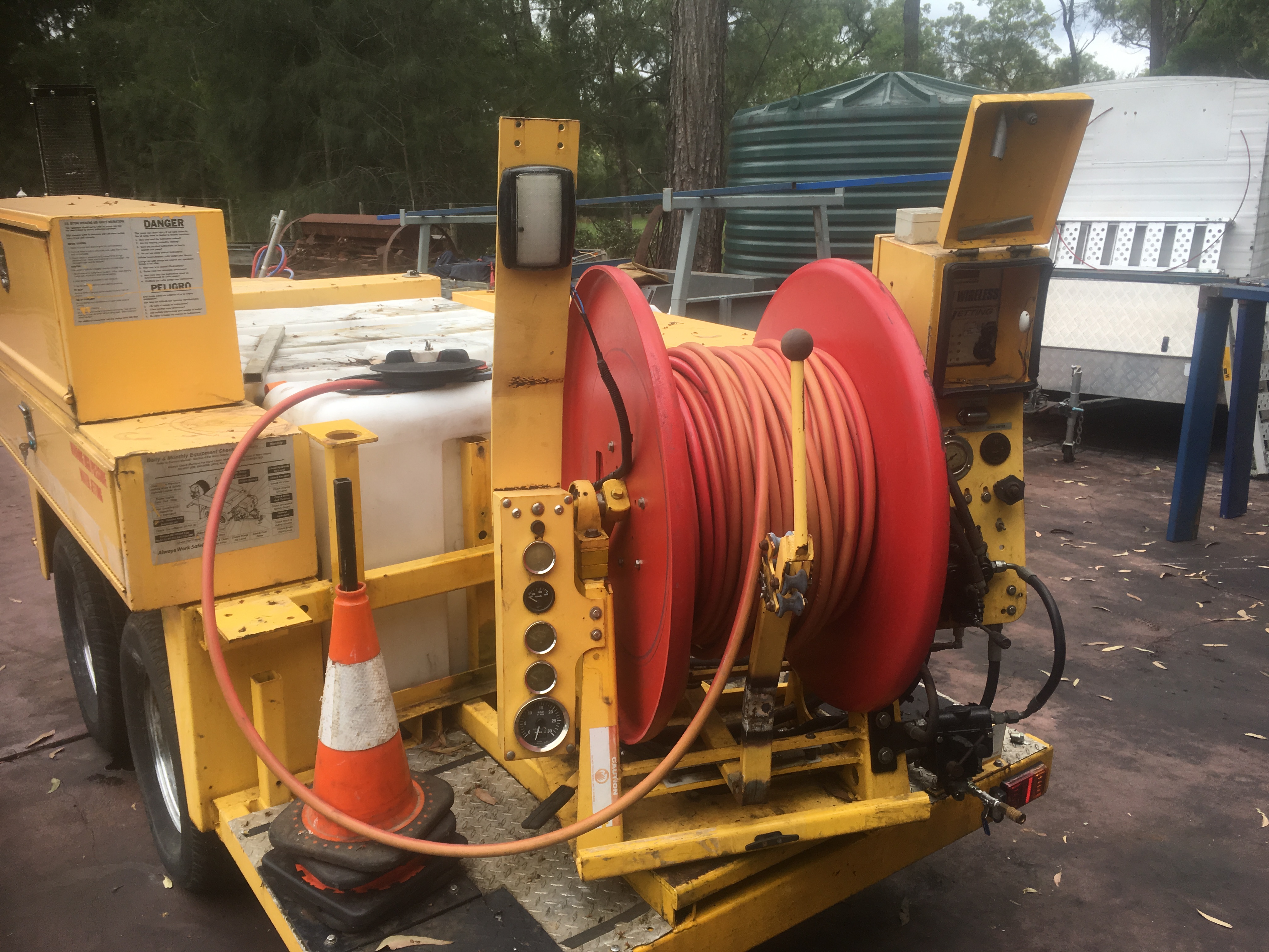 4,000 P.S.I. @ 68 L.P.M. dual axle trailer, mounted 1,000 litre water tank, 5/8” hose reel and hose, hydraulic rewind tool boxes etc. 2009 4 cylinder hatz silent pack ex government only 70 hours from new half replacement cost.