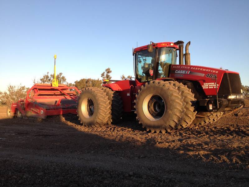 2011 SLEIGER SCRAPER TRACTOR 485 new Horwood Bagshaw bucket in the new shape, new cushion hitch, new laser gear, all just 12 months old, has 2000 hours on it, still has 12 months full warranty on tractor and bucket. Ring Mark.