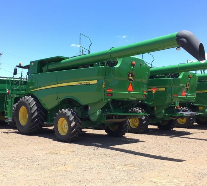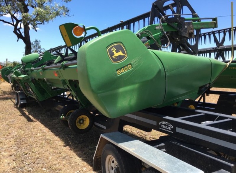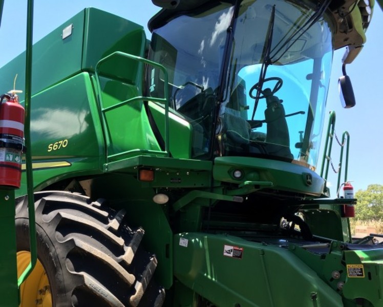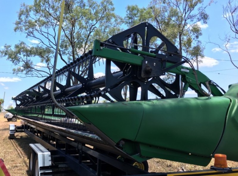John Deere S670 Combine Harvester, 2013 model, 3460 engine hours, 2470 rotor hours, straw chopper, 800/70R38 steer tyres 95%, JD 2600 screen, John Deere 640D front, 2014 model, 40ft draper, no trailer, repair history, located near Banana Qld, price includes GST.