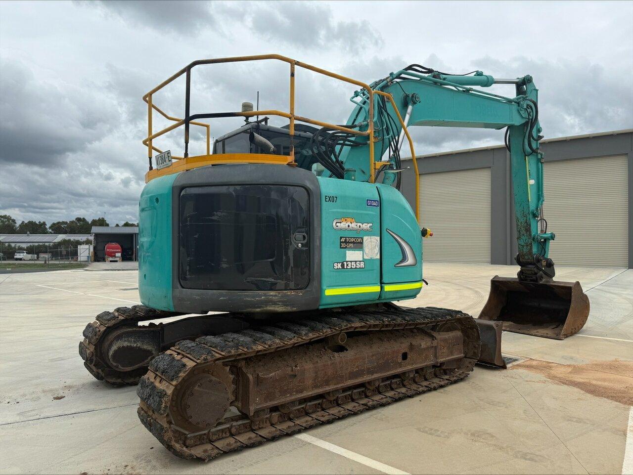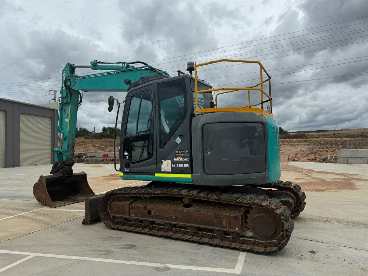 2012 Kobelco SK135SR-2 Excavator - Fitted With: Fully Enclosed Air Conditioned Cab , Steel Tracks w/ Rubber Pads, Geith Hydraulic Quick Hitch, Safety Hand Rails, E-Stops. Levelling Blade, Battery Isolator, Rotating Beacon, Hammer & Auger Piping, Mud Bucket , Approx. 9000hrs