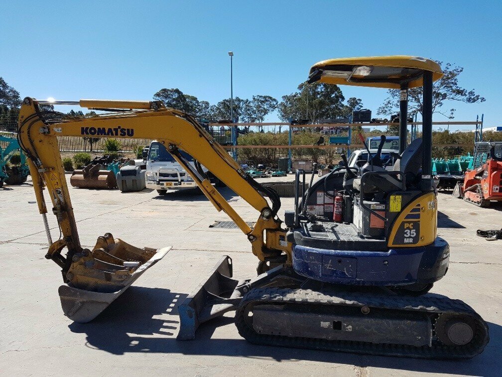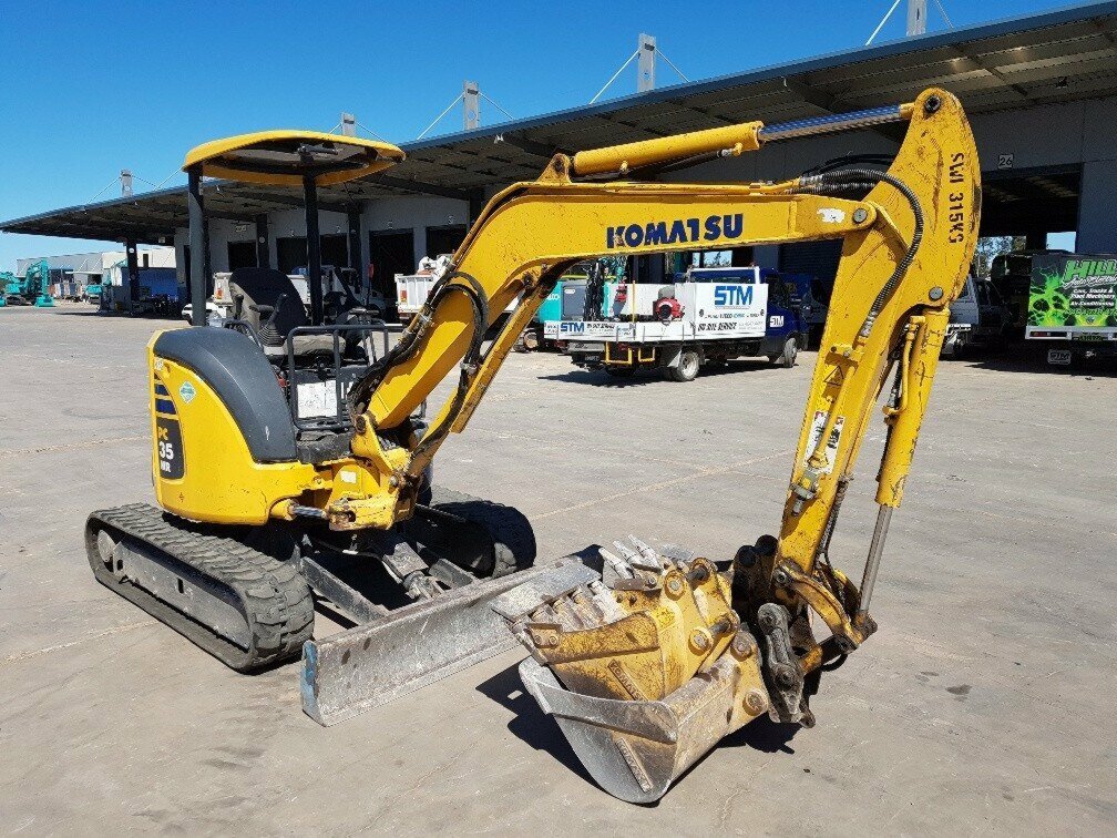 2013 KOMATSU PC35MR-3 - 3.5T EXCAVATOR - ROPS CANOPY - HYDRAULIC QUICK HITCH - 300MM GP BUCKET - 600MM GP BUCKET (BLADE) - MUD BUCKET - DOZER BLADE - FIRE EXTINGUISHER - ROTATING AMBER BEACON - RUBBER TRACKS - Serviced and ready to work.