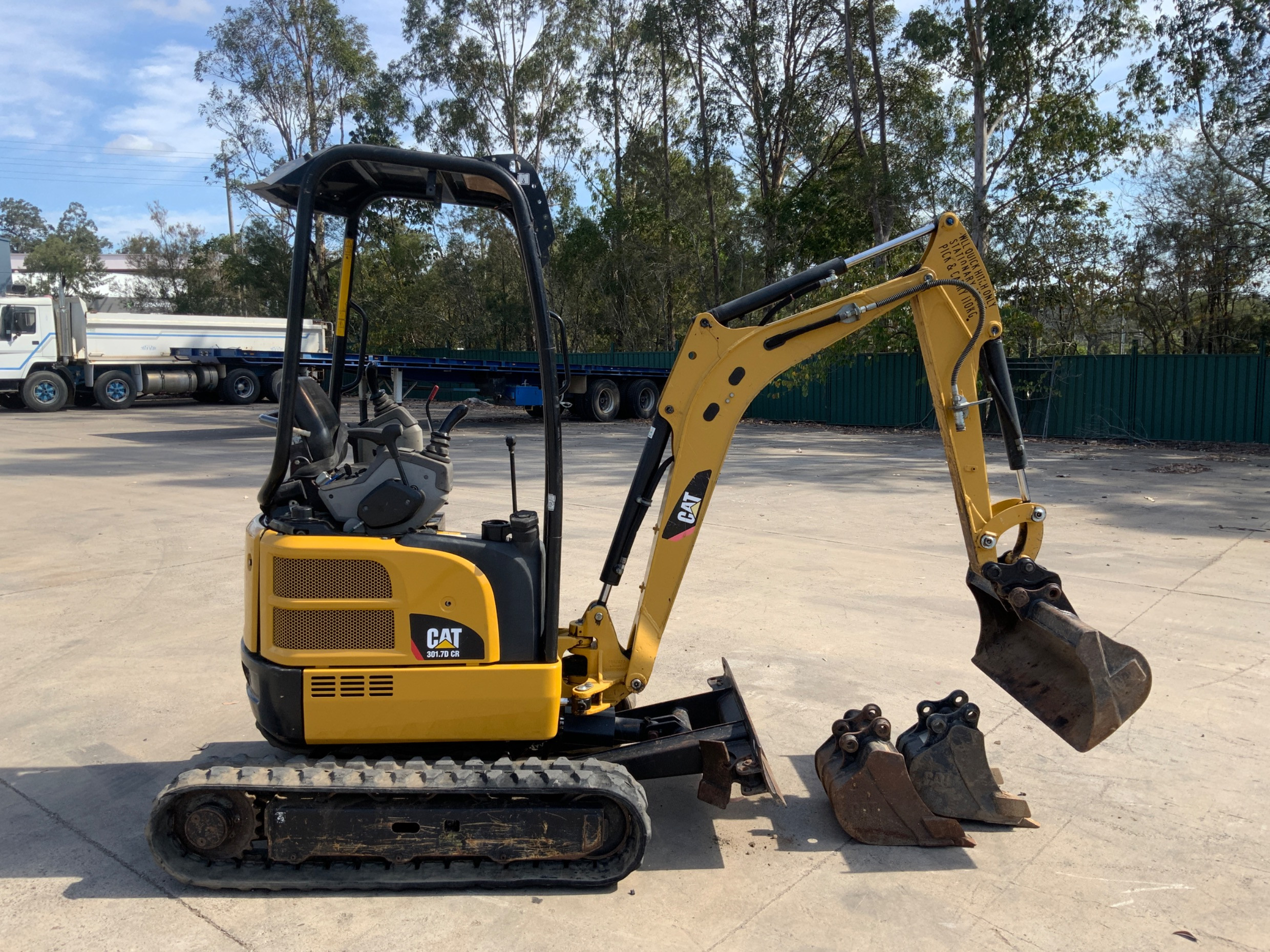 2014 CATERPILLAR MINI 301.7D CR Excavator . 2 ton Machine super easy to operate, 15.7 Kw powered engine. Only 2375 hours, rubber tracks, 11 inch digging bucket, 17 inch digging bucket and 39 inch batter bucket and front blade, hand & foot controls.