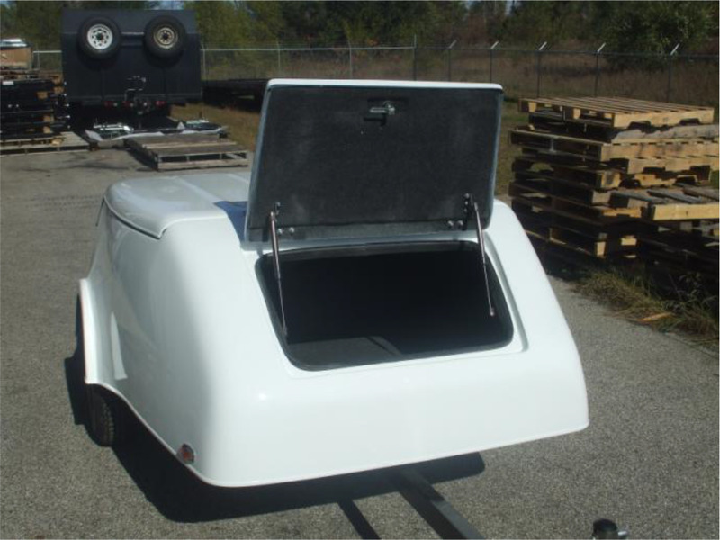 New Fibreglass Personal Cargo Carrier comes with a handy drop down tailgate and a front access Door/Hatch for easy access to all cargo. Specification: Gross Weight tare mass: 167.83kg, Exterior Box Length: 223.52cm, Exterior Box Width: 175.26cm, Exterior Box Height: 71.12cm, Wheel size: 33.02 x 11.43cm, Max. Load Rating: 725.75kg, Hitch Weight: 16.78kg, Overall length: 302.26cm, Overall Height: 106.68cm, Tire size: ST175/80 - D13, Overall interior Cubic Feet: 1.9765 m3. Available colour in black, white, silver metalick or any other colour at additional $400. Interior carpet colour grey or black. Capacity: 6 - 8 standart sutcases.