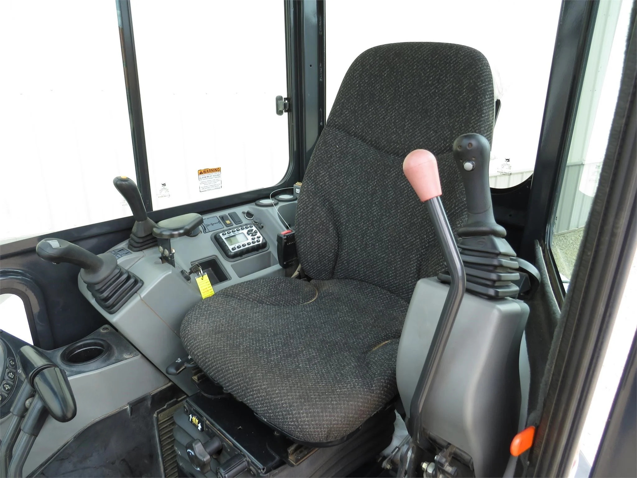 48 Hp, 5600 Kg, 60 cm Bucket, Hydraulic X-Change, Hydraulic Thumb, 2-Speed, A/C, 193 cm Backfill Blade, 40 cm Tracks, Frost Tooth, 1,471 Hours. Operating Weight: 5535.7 kg Auxiliary Hydraulics: Yes Coupler: Yes Quick Attach: Yes Thumb Type: Hydraulic Extendable Arm: Yes Chassis: Track Type: Rubber Interior Seat Material: Cloth Dimensions: Boom/Stick Option (Hex) 1 Max Cutting Height: 4145.28 mm Max Reach Along Ground: 6096 mm Max Digging Depth: 3931.92 mm Boom Swing – Left: 75 degrees Boom Swing – Right: 50 degrees Dimensions: Height To Top Of Cab: 2540 mm Length: 524.26 cm Overall Transport Length: 5242.57 mm Width: 1960.88 mm Undercarriage: Max Travel Speed: 4.99km/h Min Travel Speed: 3.06km/h Engine: Fuel: Diesel Net Power: 37.2kw / 49.8 hp Power Measured @: 2200rpm Aspiration: Tier 4 Operational: Operating Weight: 5535.7 kg Fuel Capacity: 79.9 L Buckets: Bucket Digging Force – Sae: 40 kN Arm Digging Force: 25.6 kN Hydraulic System Standard Pressure: 20994.6 kPa / 3045 psi Lift: Lift Radius: 2997.2 mm Hydraulic System: Pump Flow Capacity : 75.8L/min Lift: Max Lift Capacity: 2267.6 kg
