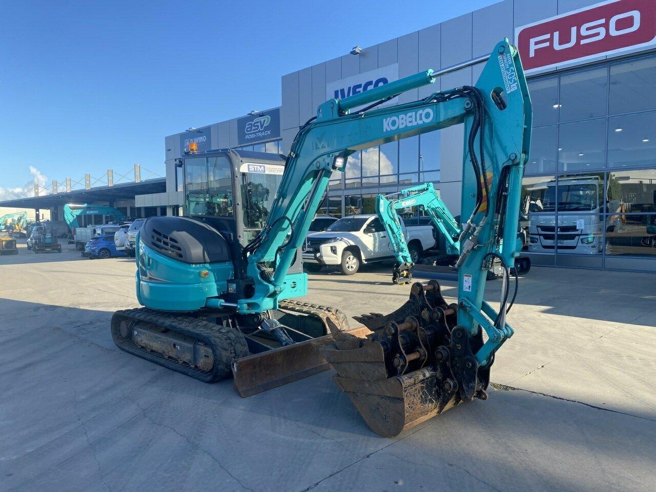 2021 Kobelco SK55SRX-7 AIRCAB Aqua Excavator 0.0l - Fitted With: Fully Enclosed Air Con Cab, Levelling Blade, Rubber Tracks, Rotating Beacon, Hi Flow System, Dual Lock Hydraulic Quick Hitch, Hammer & Auger Piping, Case Drain, Tilt Piping, 120mm Mud Bucket, 600mm GP Bucket, 450mm GP Bucket, Single Tyne Ripper,
