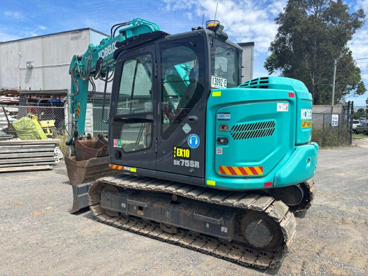 2021 Kobelco SK75SR-7 Excavator - Fitted With : Fully Enclosed Air Con Cab, Battery Isolator, Dual E-Stops, Internal Fire Extinguisher, 270 Degree Eagle Eye Camera, Hammer & Auger Piping, Quacker Motion Alarm, Tinted Windows & Reflective Tape, UHF Radio, Rubber Pads, Extra Counter Weight, 1500mm Mud Bucket, 600mm GP Bucket, 450mm GP Bucket., 300mm GP Bucket, 1112hrs On Machine