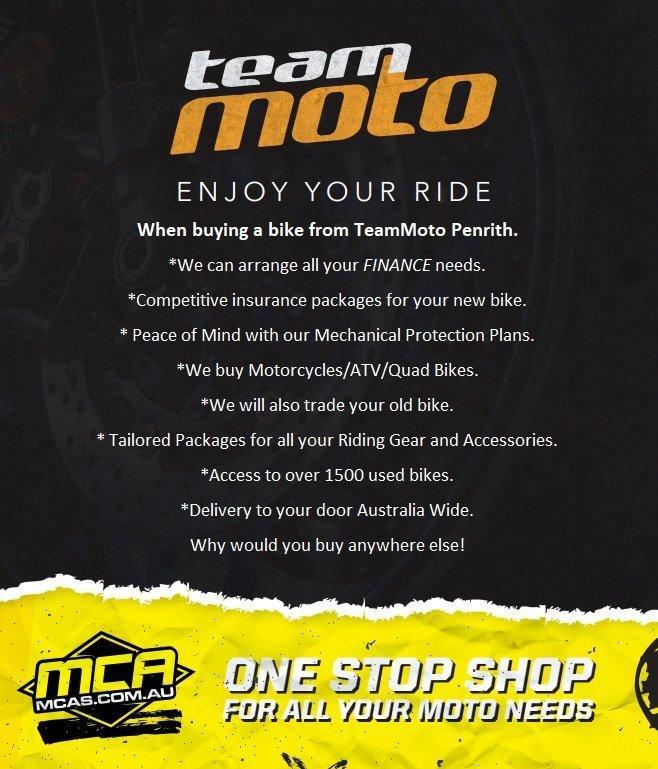 Don?t miss this opportunity! Contact us today to schedule a test ride and experience the excitement for yourself. Your next adventure is just a call away!With up to a 3 year mechanical protection plan and the most competitive finance and insurance packages available, as Australia?s largest motorcycle retailer no one makes it easier to purchase a New Side by side . Plus we can organise to have your Side by side delivered directly to your door anywhere in Australia through our dedicated Side by Side freighters. Ensuring peace of mind, ease & convenience. An Approved side by side is the best choice in Australia for your next bike. Why buy elsewhere?