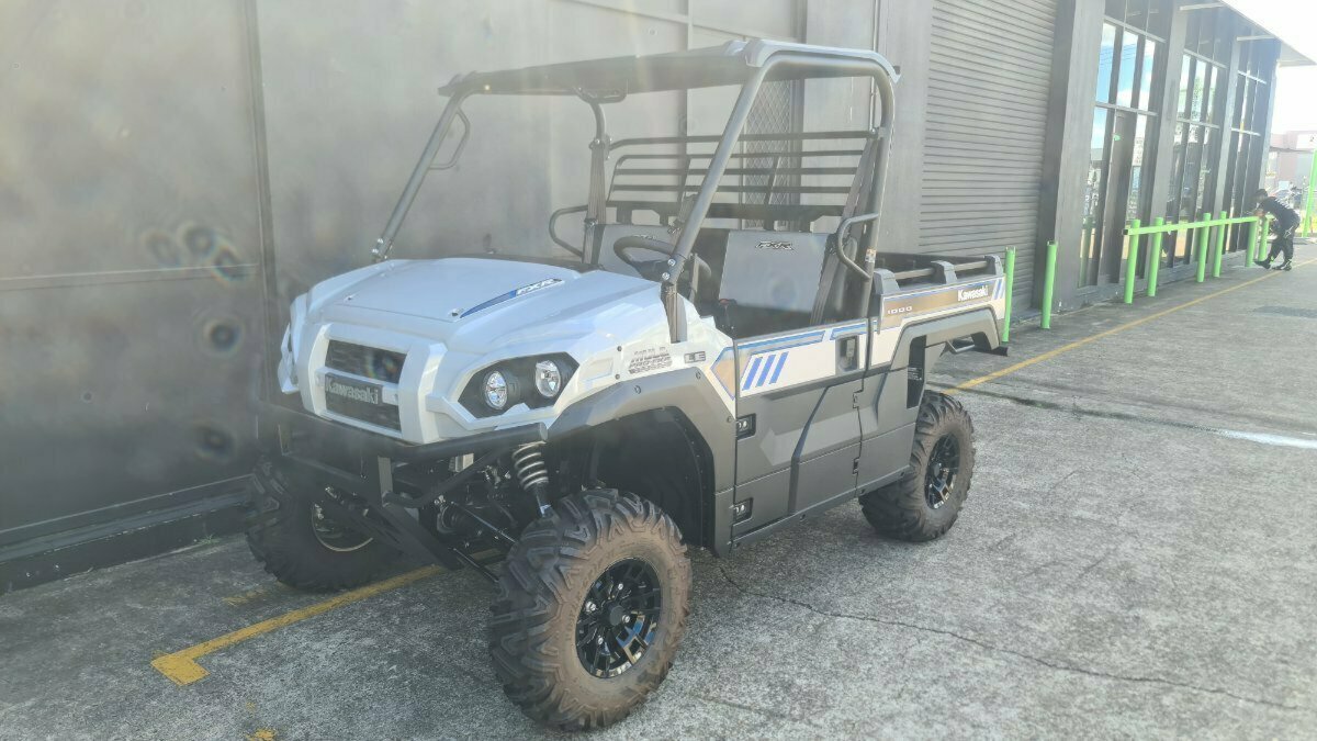 Fresh to the line up for Kawasaki in 2025 is the FXR 1000 LE.^Building on top of the already famous Mule line of Kawasaki American manufactured machines. ^The new shorter wheelbase with better turning circle plus higher ground clearance and bull bar front and rear.^Underseat storage area^Seats three passengers with contoured seat^Halogen and LED headlights^Roof^27 inch tyres on cast aluminium black wheels^2WD/4WD and dual-mode rear differential^1 tonne towing capacity^Electonic power steering^^Do not settle for Chinese plastic machines that break down all the time. The Kawasaki Mule is known for it's strong build quality from serious materials and it comes backed by Kawasaki three year warranty.^^Come down and check out the line up from the gold coast's premium side by side dealership located just off the M1 in Nerang.^^Quick and easy finance approvals.