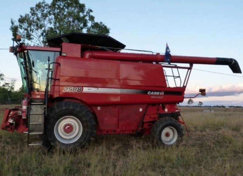 Case 2588 Combine Harvester, 2008 model, 2778 engine hours, 1825 rotor hours, autosteer valve to suit Trimble GPS, MacDon 2143 draper front (2009 model), 10.5 cut, pickup reel, comes with McCormack comb trailer (2014 model), located near Millmerran Qld, price includes GST.