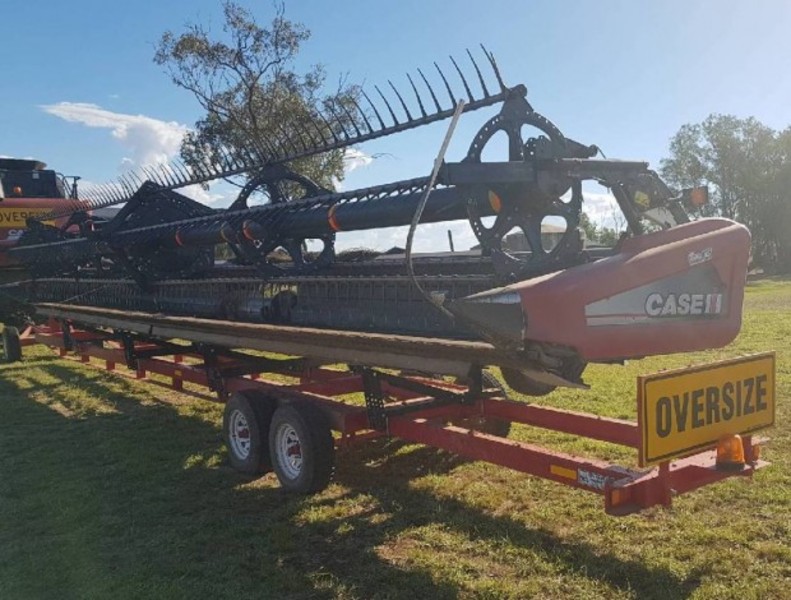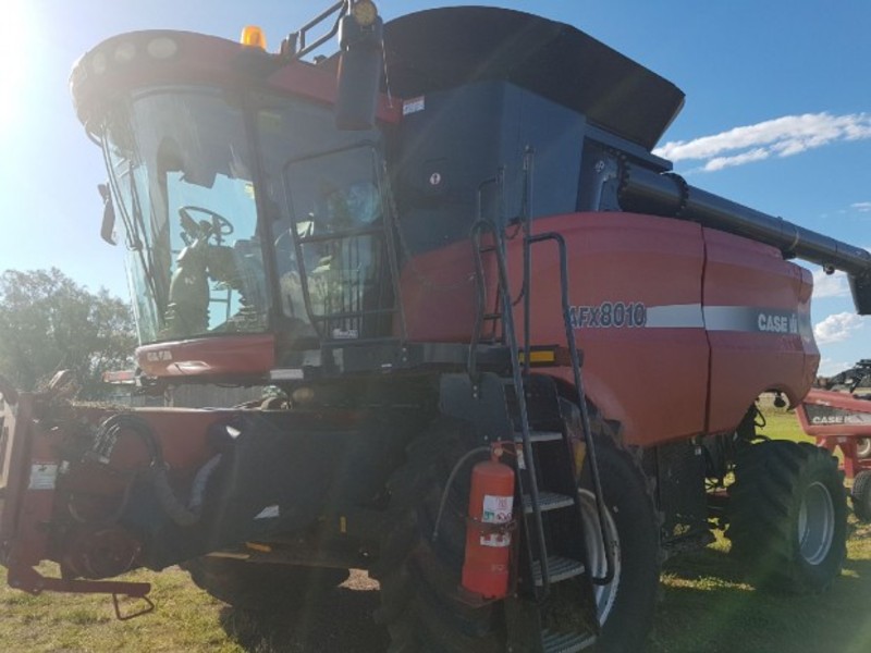 Case AFX8010 Combine Harvester, 2004 model, 3725 rotor hours, 5258 engine hours, Trimble FM750 steering (RTK), Pro 700 screen replaced this year, large and small wire concaves, Case 2152 draper front, 2009 model, sorghum fingers, comb trailer 2009 model, major preseason done 150 hours ago, located near The Gums Qld, price includes GST.