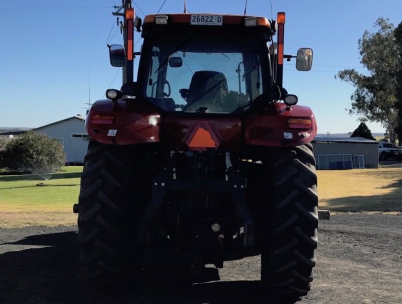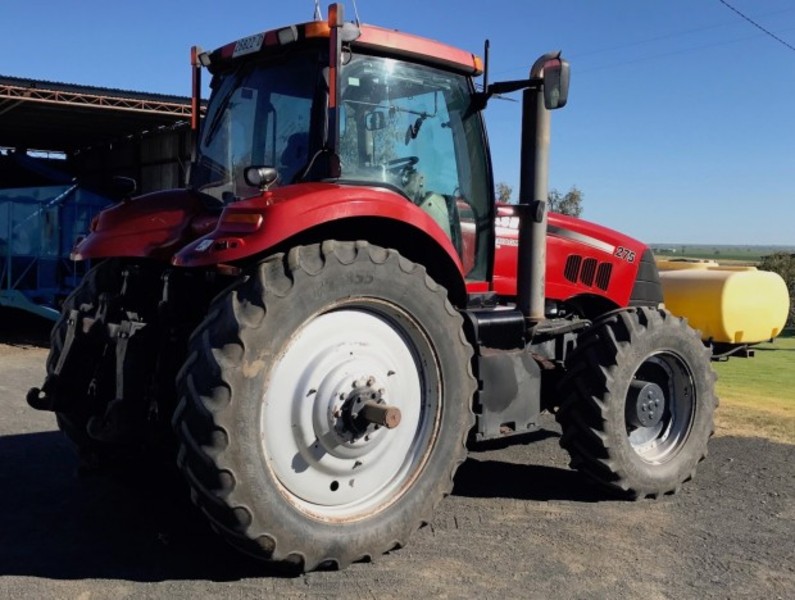 Case Magnum 275 Tractor, 275 horsepower, 2008 model, 9930 hours, power shift transmission, left hand reverser, GPS steering valve and wheel angle sensor, 3 point linkage with quick hitch, 4 remotes, PTO, 480/80R50 rear singles (brand new to be fitted), 480/70R34 front tyres at 35%, front 1200 litre tank with stainless steel hypro pump and plumbing, good condition, located near North Star NSW, price includes GST.