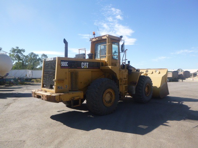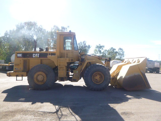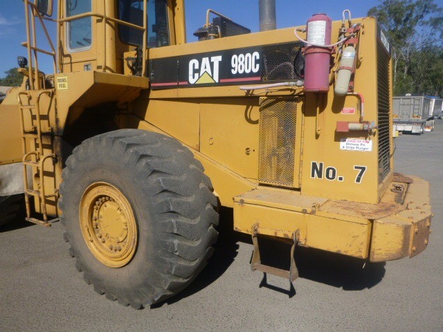 Stock Ref #OC708 - Caterpillar 980C Front End Loader. Engine No 70V7109. Articulated axles, Air Con Cab, GP Bucket, Maxi Brakes. Length with Bucket on Ground 28.3 ft,<br>Height to Top of Cab 12.5ft, Reach at Max Lift and Dump 4.3 ft. Vendor Asking $110,000. Located at Tivoli, QLD. Inspection prior to purchase is highly recommended.