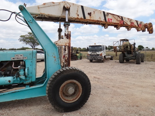 Stock #OC968. BHB Chamberlain Tractor Crane. 6 Tonne. Series: TC36. 4 cylinder John Deer Engine. Diesel. Gearbox: 3 x 2. Tyre size - Rear: 1804 x 28. Front: 1400 x 20. Rear tyre percentage: 95%. Front: 85%. Starts easy, runs and operates ok. Motor smokey. Hydraulics need oil. Has brakes but needs new tredle valve. Air brakes with front discs. Very good rubber. No Test certs. Has one hydraulic jib extension. No hook or chains. Has new battery supplied. Please contact Western Traders to organise viewing. Vendor asking $11,000. Located at Dalby, QLD. Inspection prior to purchase is highly recommended.