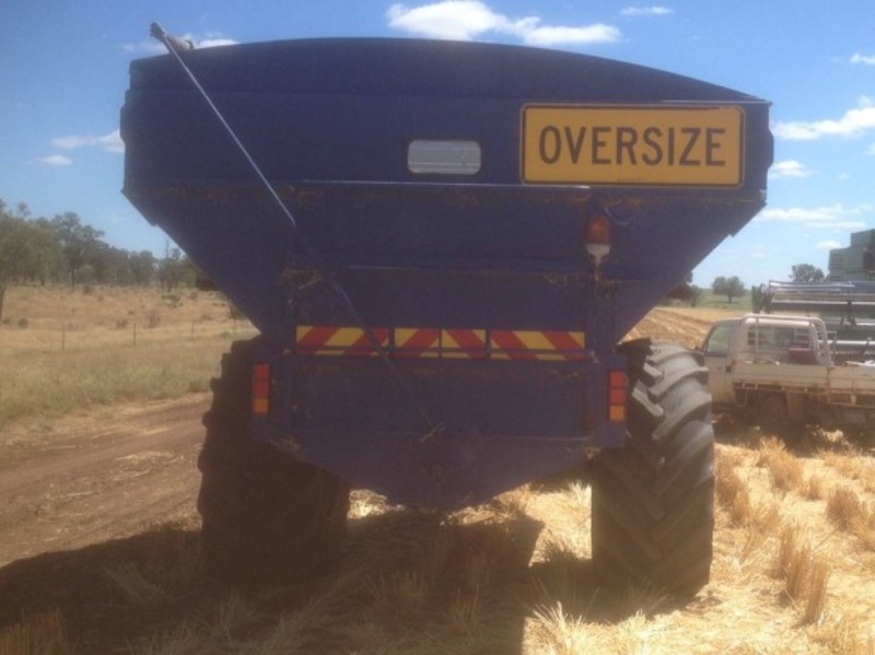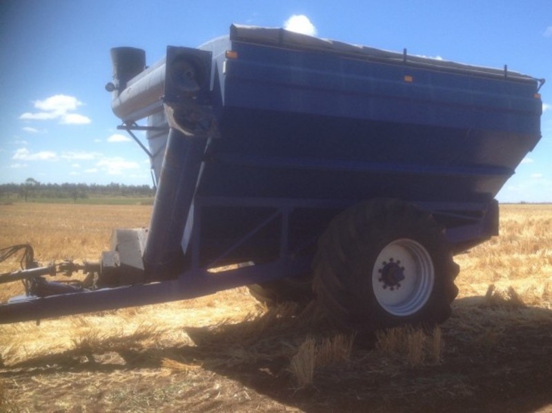 Custom Built Chaser Bin, 18 tonne, 15 inch auger, single axle, 2.6m wheel centres, roll over tarp, PTO drive, hydraulic chute shut off, located near Glenmorgan Qld, price includes GST.