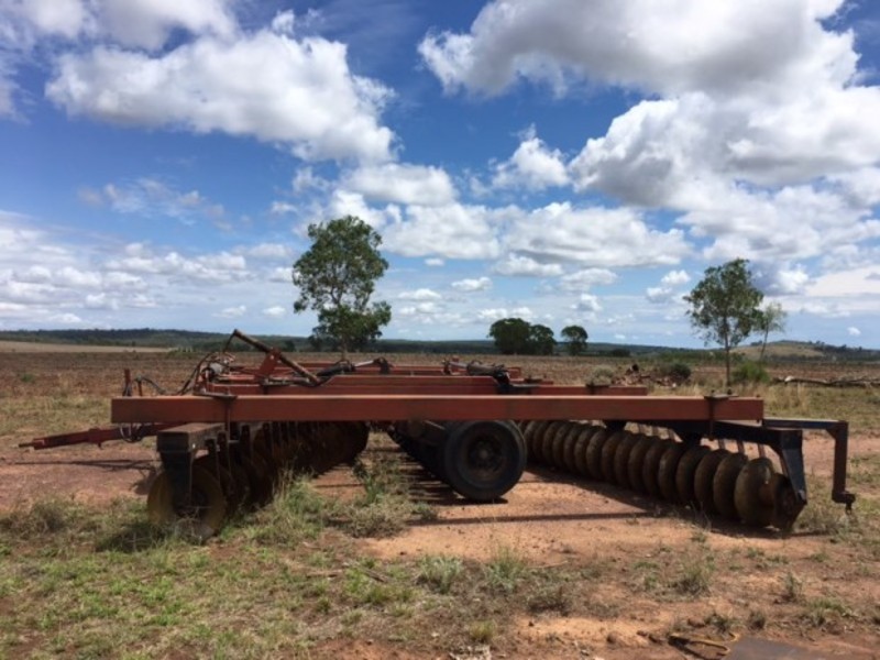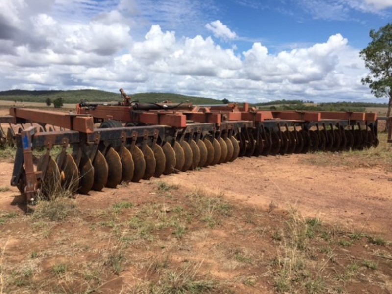 Custom Built Offset Disc, 80 plate, mainly Grizzly gang components, custom built frame, single section fold, 28 inch discs 50%, located near Yetman NSW, price includes GST.