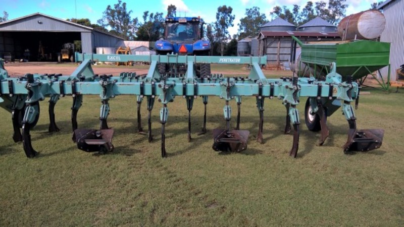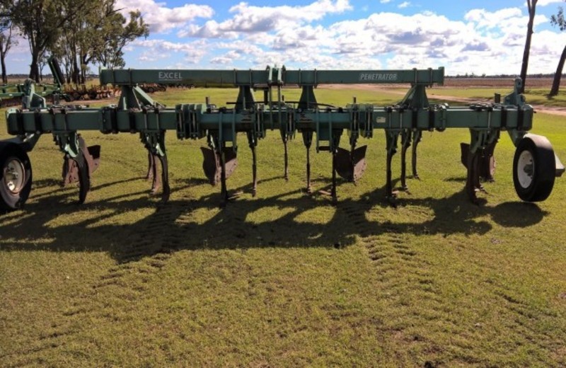 Excel Penetrator Sidebuster, 2011 model, 6 row, 2 x 8 inch bars, 3 point linkage attachment cat3/4, back row kick back, 12 x side busting tynes, 7 x rear furrowers, can be used as sidebuster or centre buster, located at Pittsworth Qld, price includes GST.
