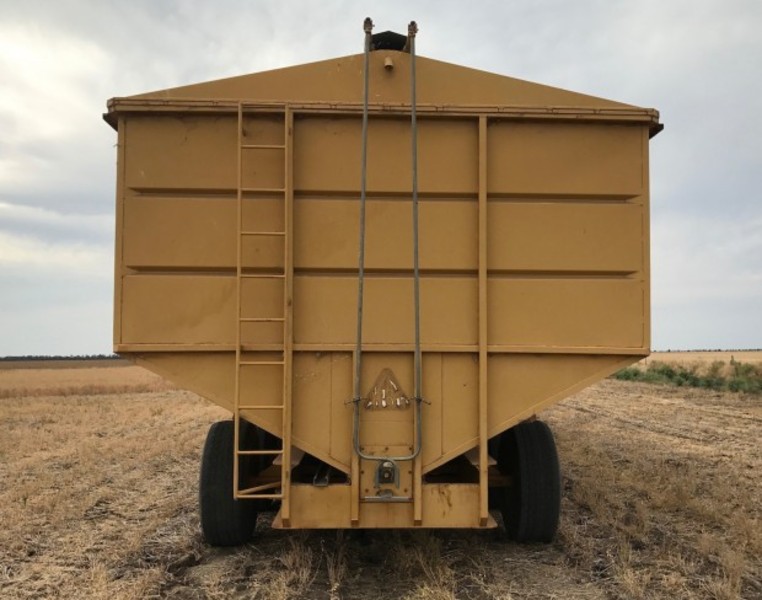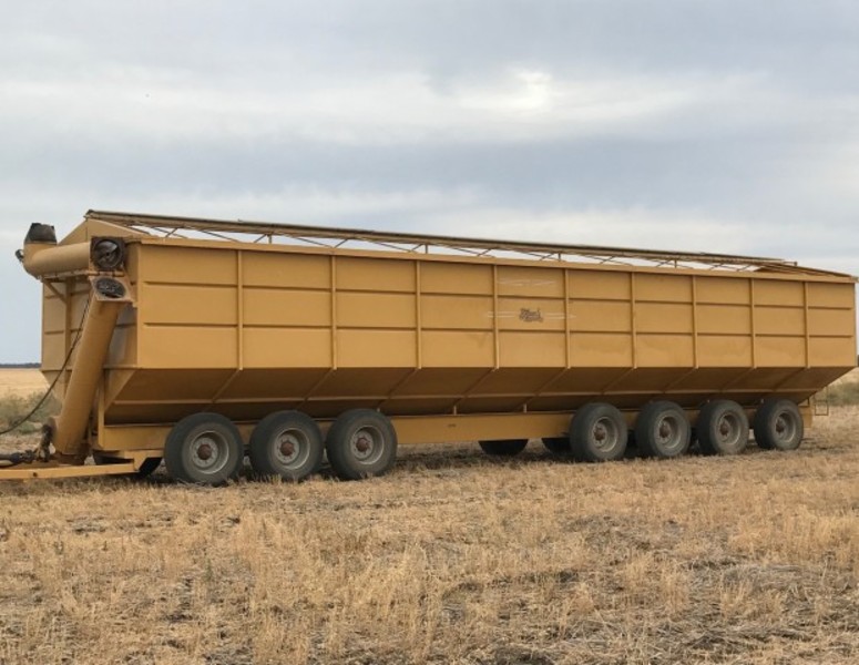 Finch Mother Bin, 110 tonne, 2004, roll over tarp, PTO drive, unload auger, lights, spare chickpea slotted slide, split partition with hyd doors, hydraulic auger fold, spare gearbox, located near Clermont Qld, price includes GST.
