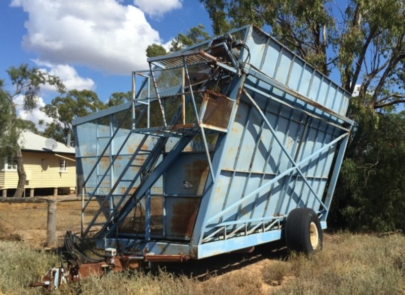Finch Cotton Boll Buggy, trailing, hydraulic spinner assist to move cotton to far side of builder when unloading, located near Toobeah Qld, price includes GST.