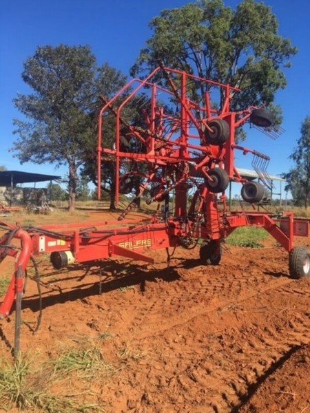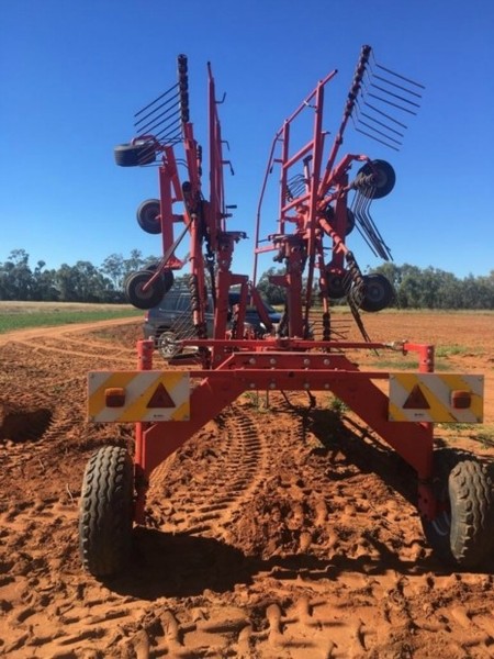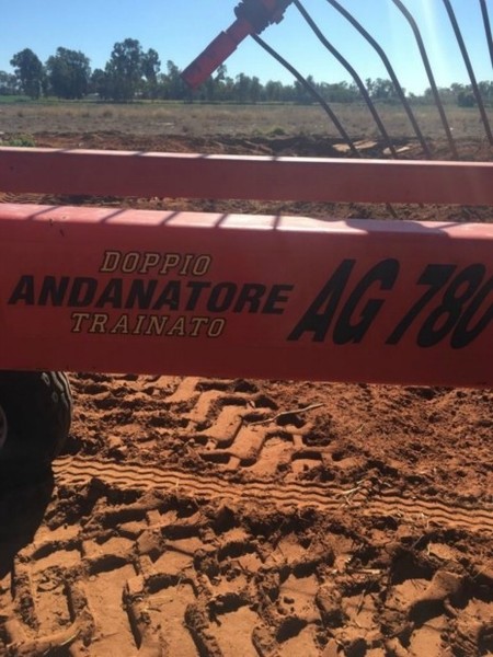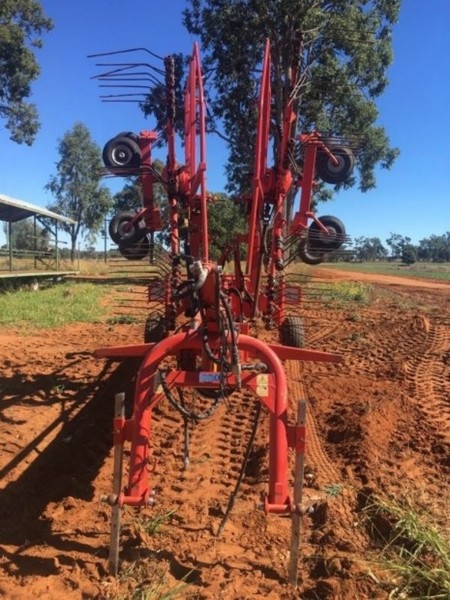 Galfre AG780 Twin spin rotary rake, 7.8m working width, good condition. Call Michael 0428 100 164