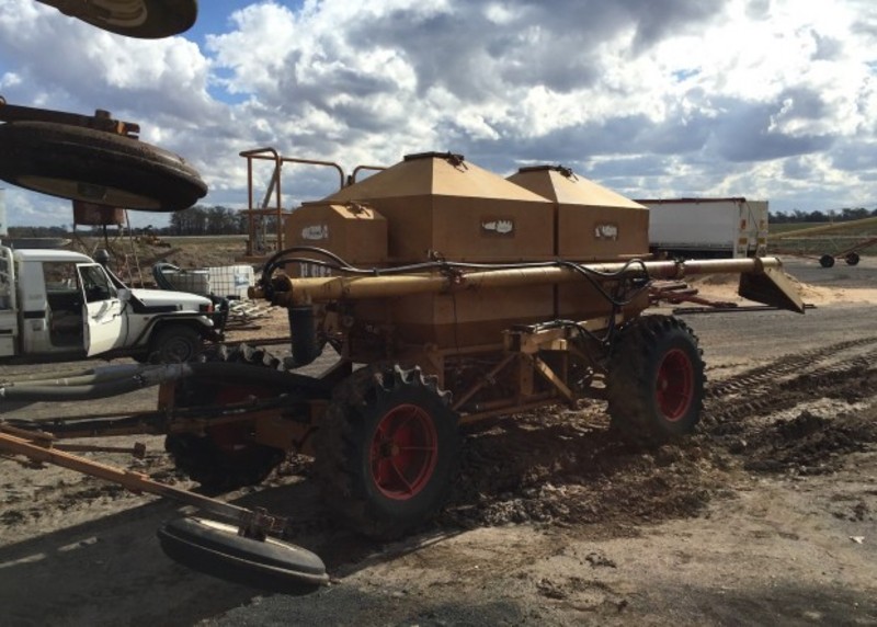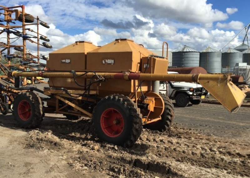 Gyral SR Air Cart, trailing, 2 x 2400kg bins, kingpin steer, 2 metre wheel centres, small seeds box, extended load/unload auger, small seeds box, located near North Star NSW, price includes GST