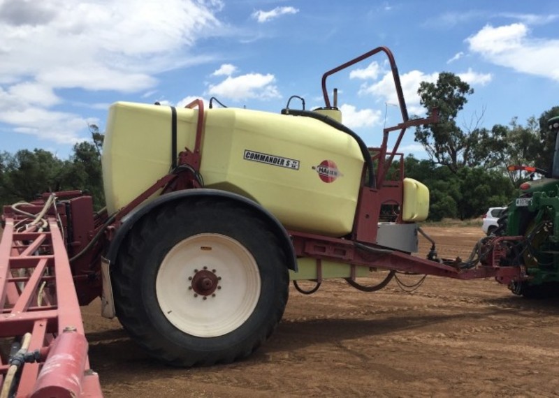 Hardi Commander S 6036 series 2 Sprayer, 2005 model, trailer, 36 metre boom, 6000 litre tank, hydraulic driven piston pump, hydraulic fold, lift and wing tilt, triplet nozzle bodies, spare nozzles, 20.8x42 tyres, Hardi 5500 controller, chemical hopper, clean water tank, owner manuals, located near Wee Waa NSW, price includes GST.