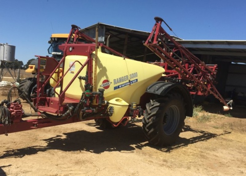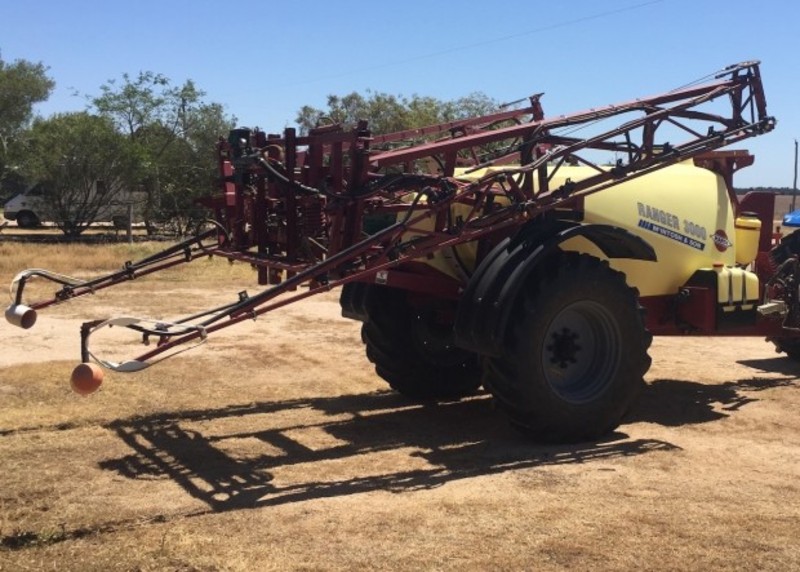Hardi Ranger 3000 Sprayer, trailer, 3000 litre tank, 70foot (21m) boom w/suspension, single axle, 18.4-30 tyres 80%, hydraulic drive diaphragm pump (recently overhauled), chemical filler, ground level fill for tank, clean water tank, 3 section boom, single nozzle bodies, foam markers, has a clean water flush tank at the rear and also a rubber suspension arrangement for the boom, 2 metre wheel centres, located near Jandowae, price includes GST.