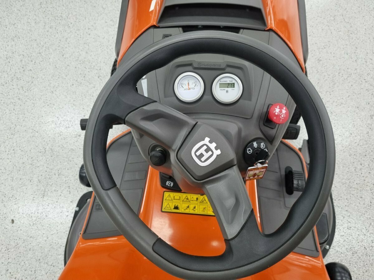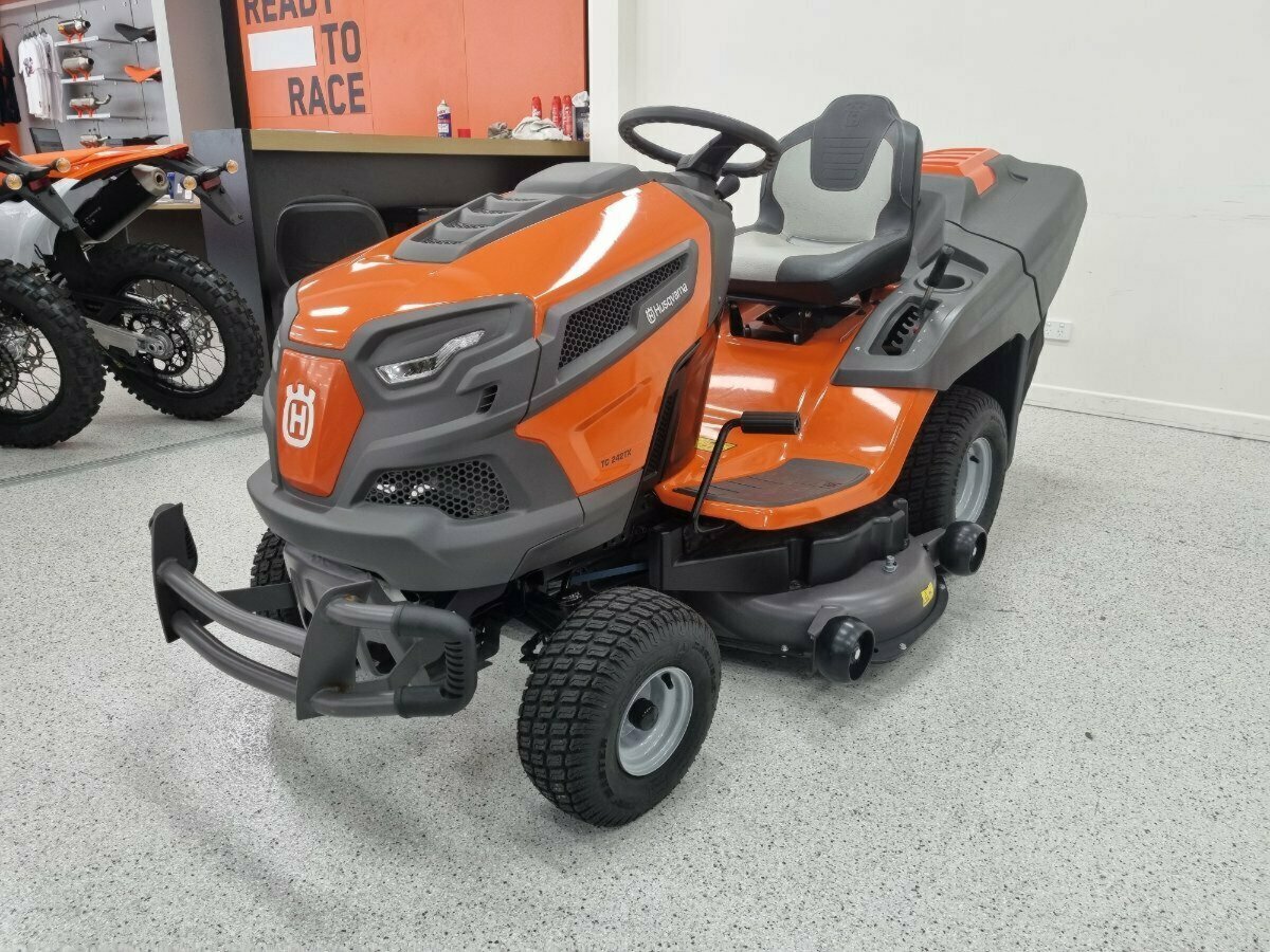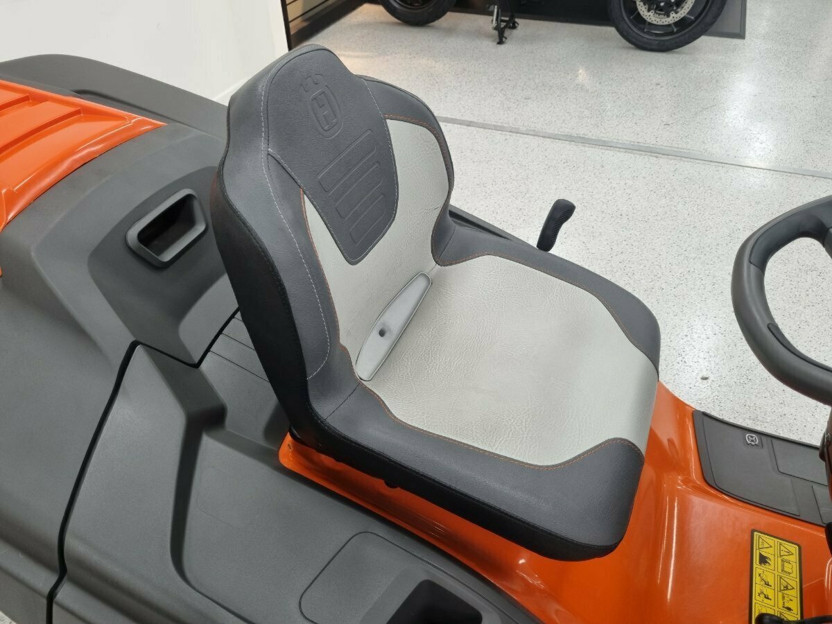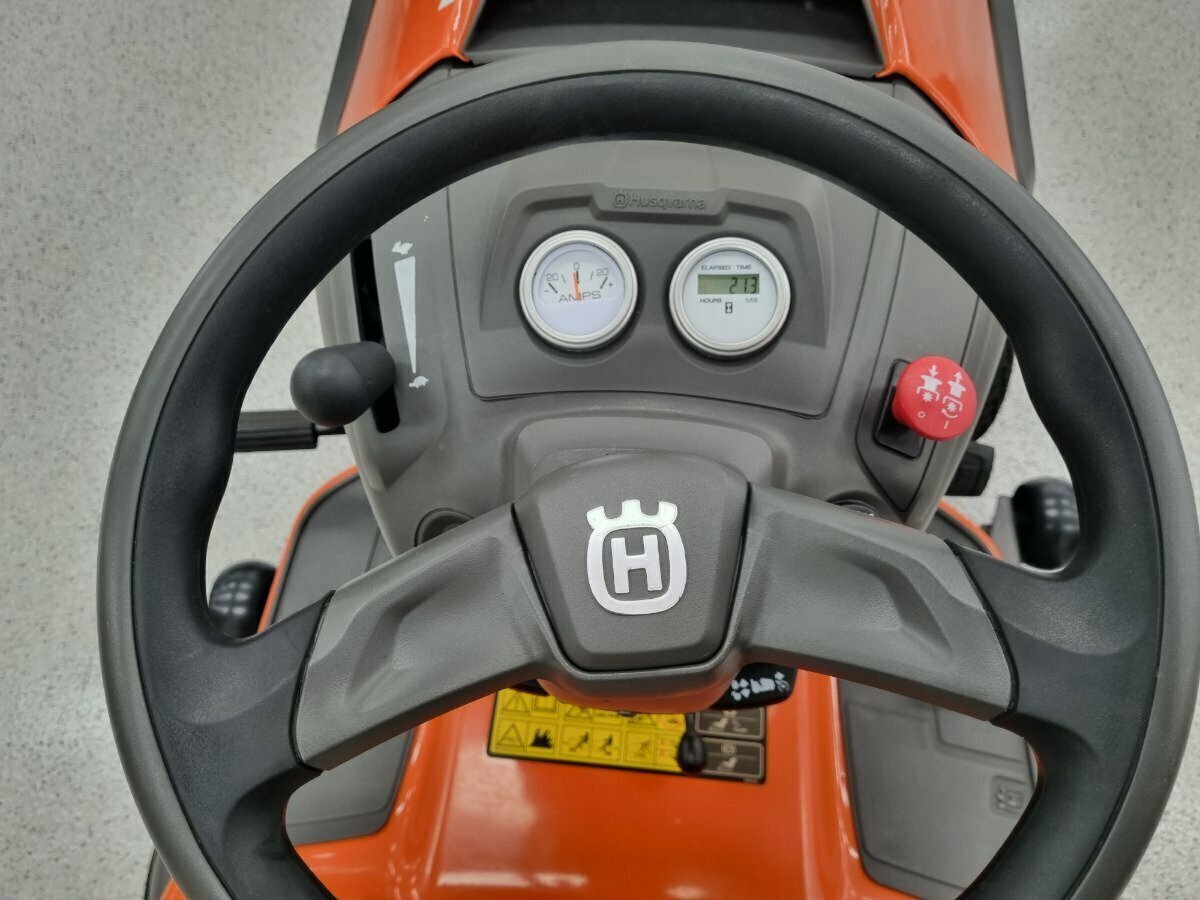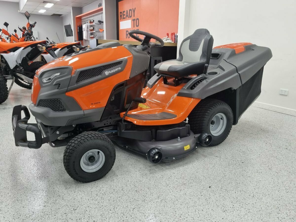 TC 242TX^Husqvarna TC 242TX is a powerful and comfortable tractor, developed for use in medium- to large-sized gardens. Equipped with integrated 320 L rear collector, pedal-operated, hydrostatic transmission and low vibe deck drive. BioClip from the 15' deluxe seat, LED lights and soft rim steering wheel.