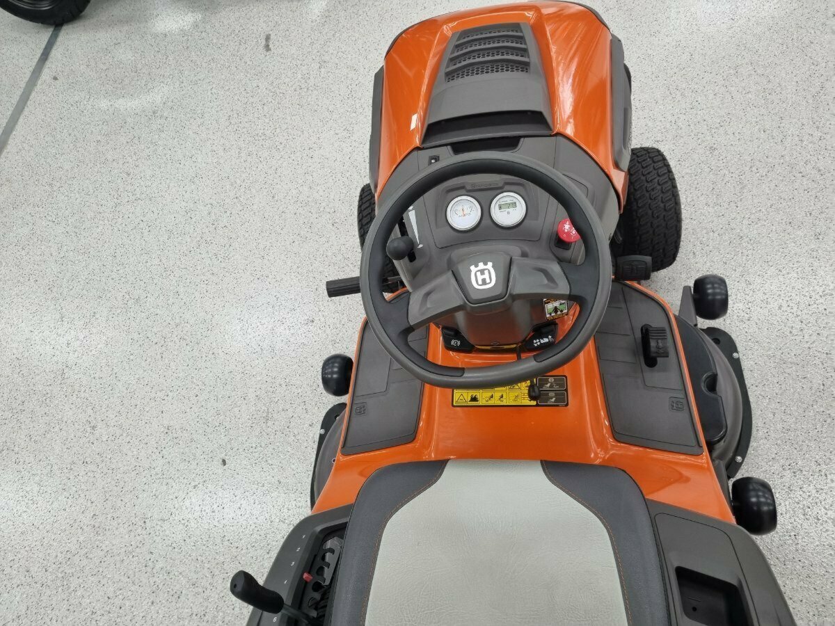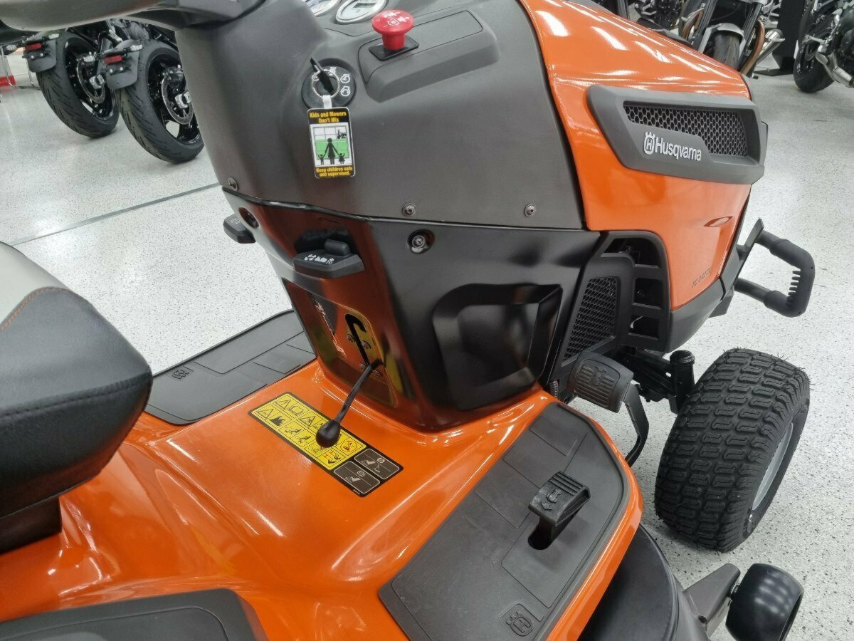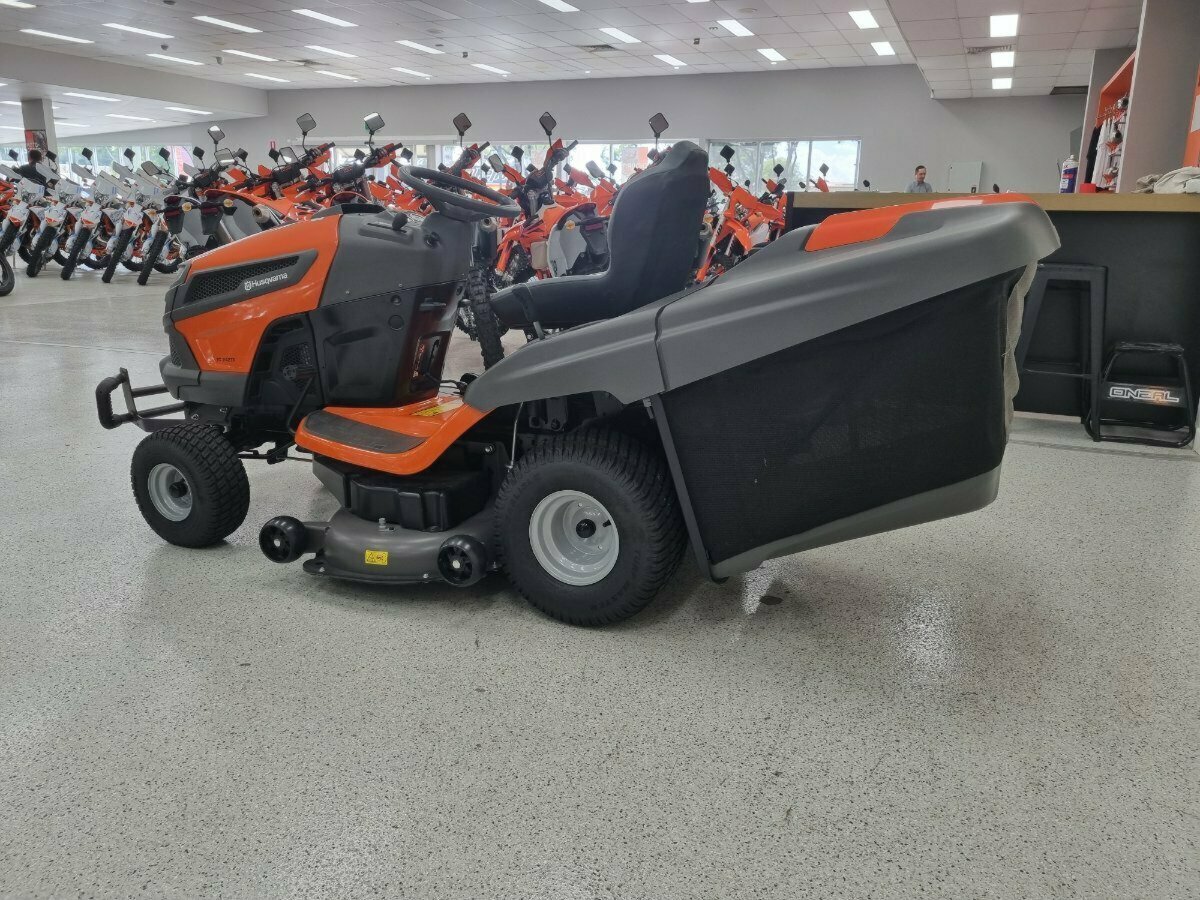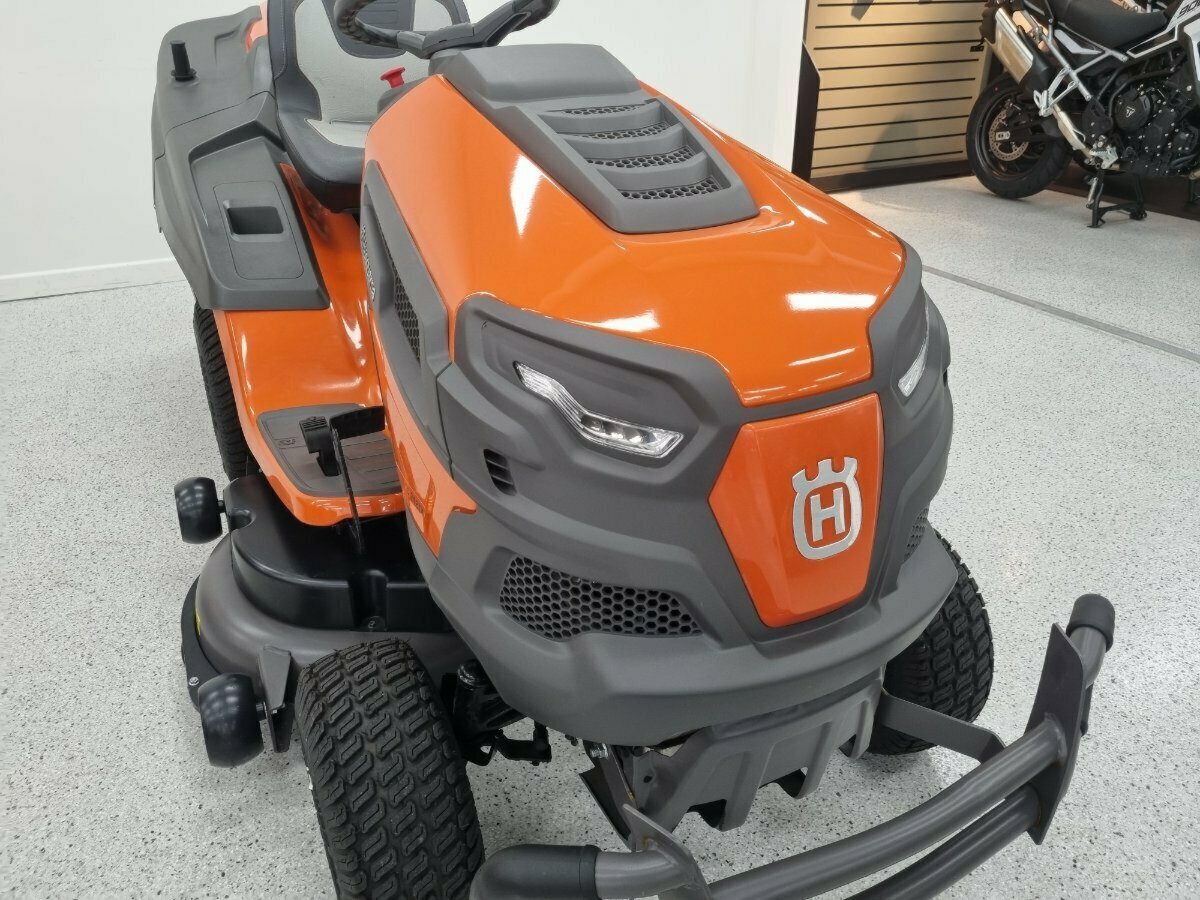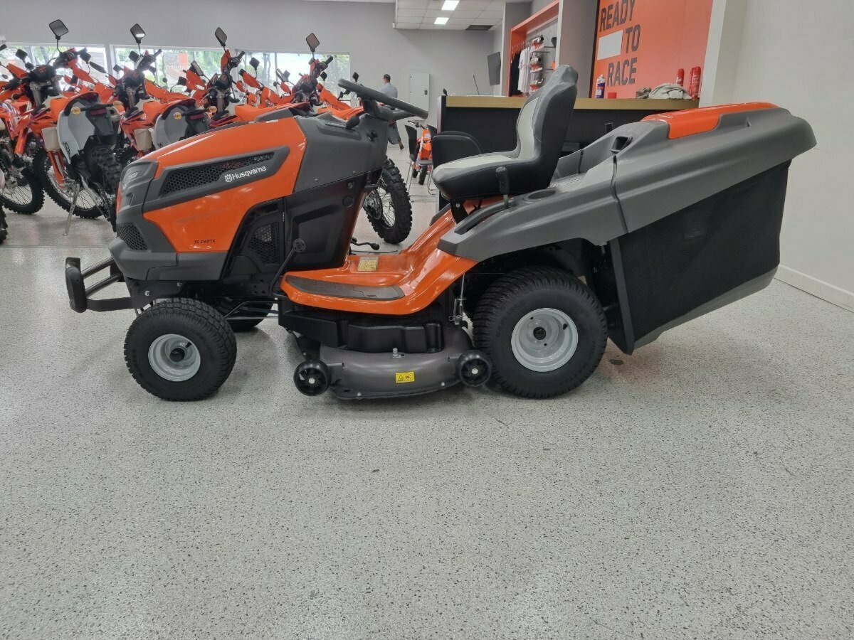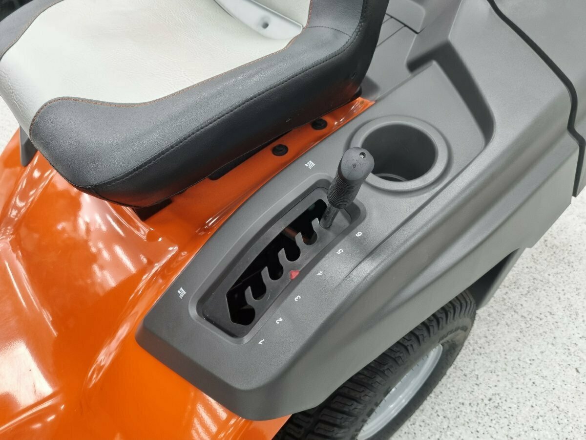 TC 242TX^Husqvarna TC 242TX is a powerful and comfortable tractor, developed for use in medium- to large-sized gardens. Equipped with integrated 320 L rear collector, pedal-operated, hydrostatic transmission and low vibe deck drive. BioClip from the 15' deluxe seat, LED lights and soft rim steering wheel.