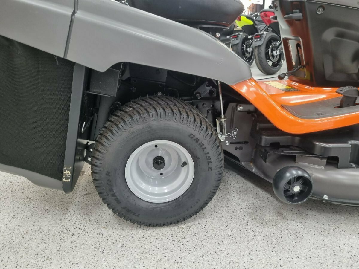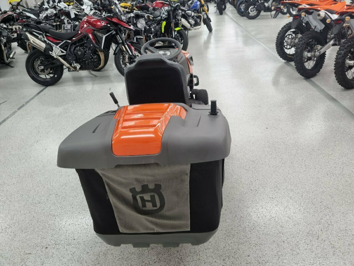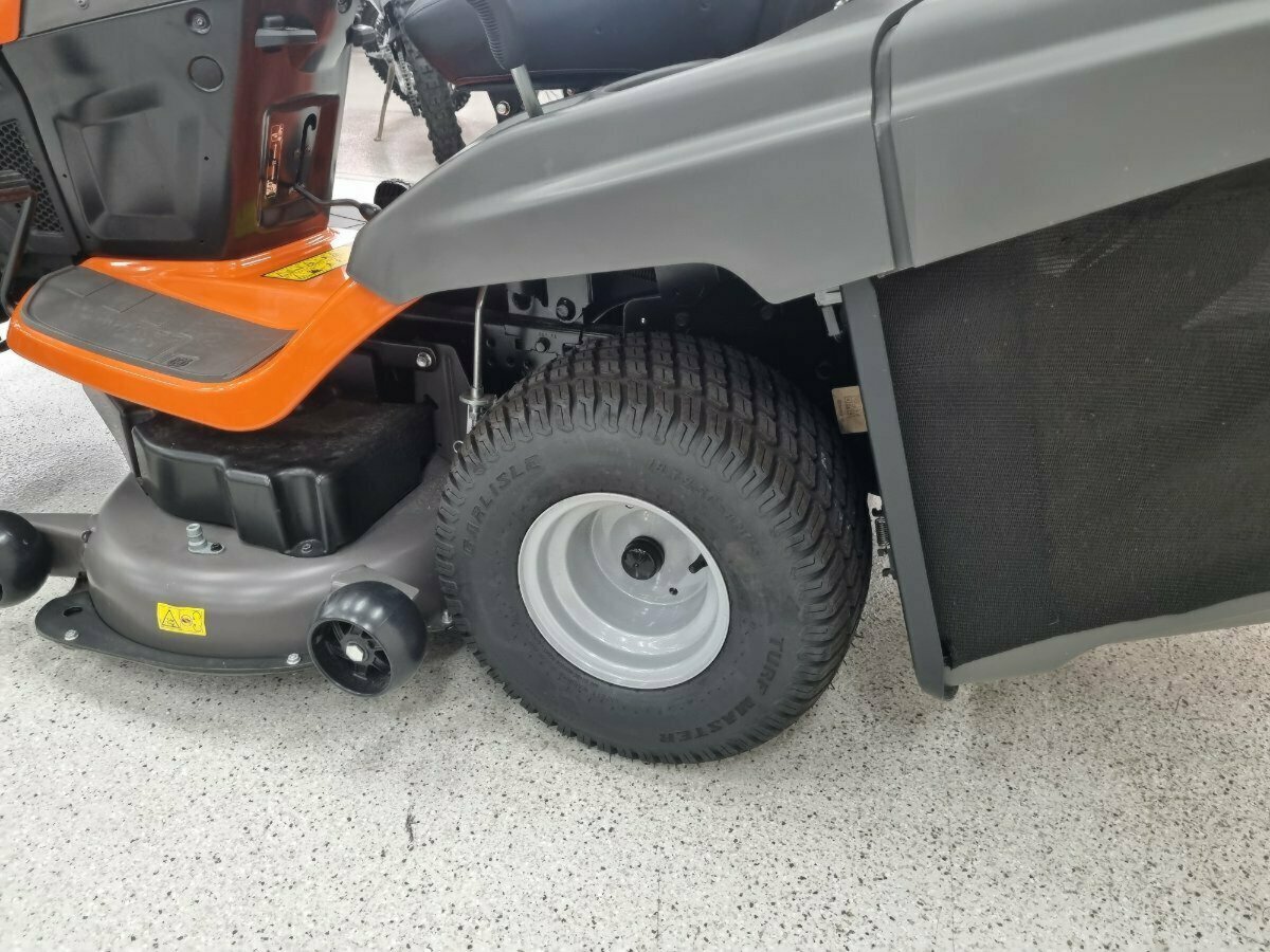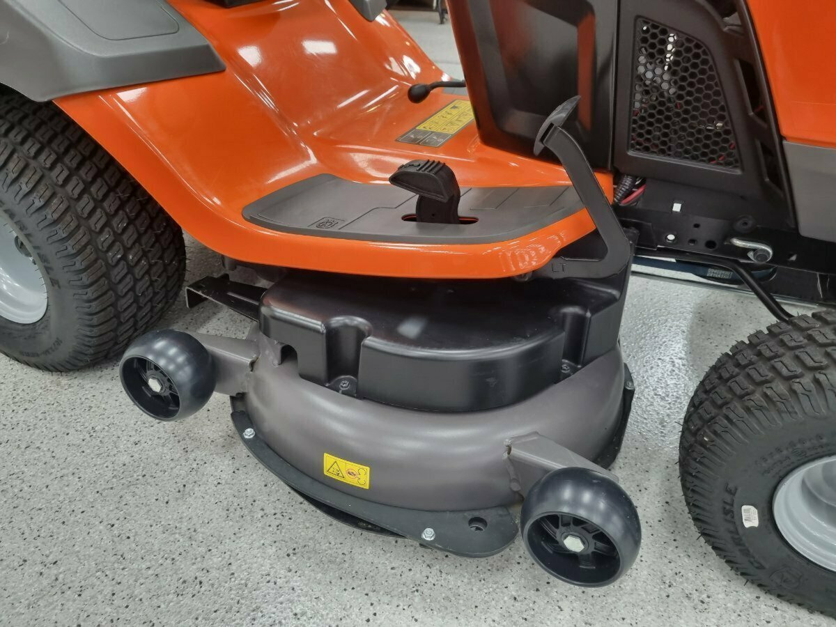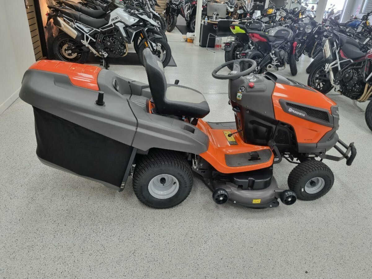 TC 242TX^Husqvarna TC 242TX is a powerful and comfortable tractor, developed for use in medium- to large-sized gardens. Equipped with integrated 320 L rear collector, pedal-operated, hydrostatic transmission and low vibe deck drive. BioClip from the 15' deluxe seat, LED lights and soft rim steering wheel.
