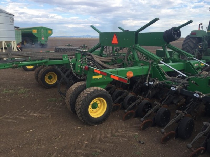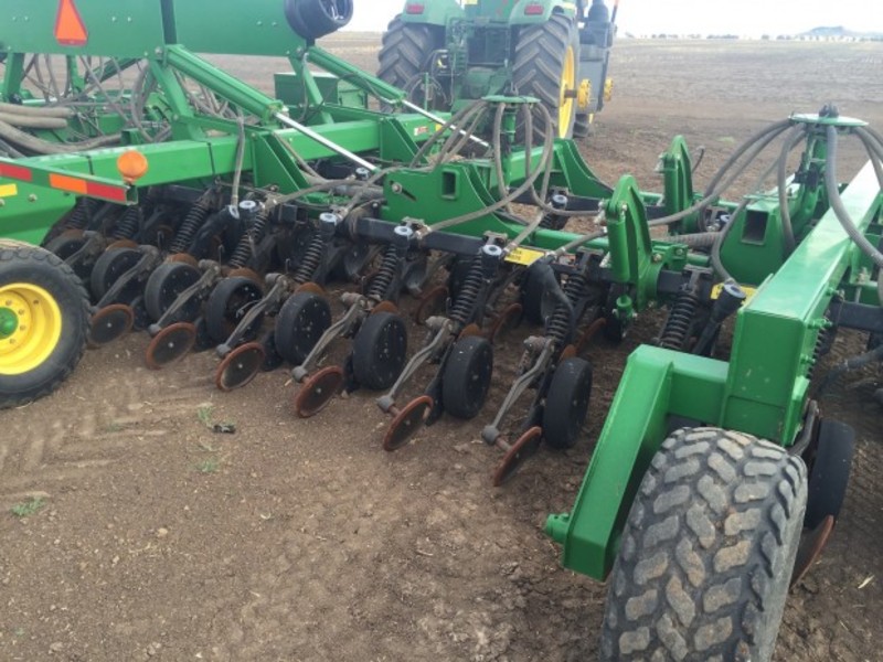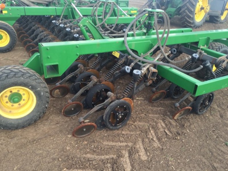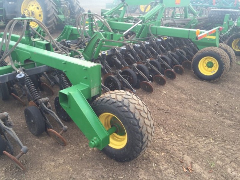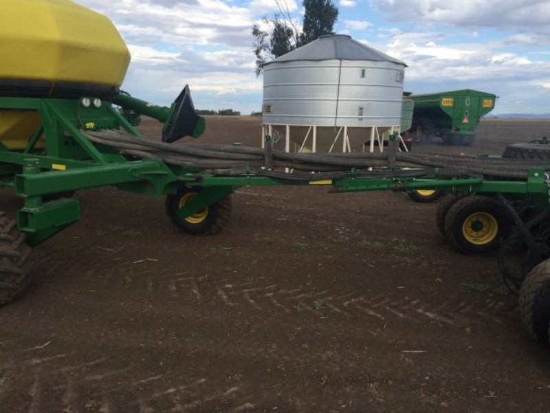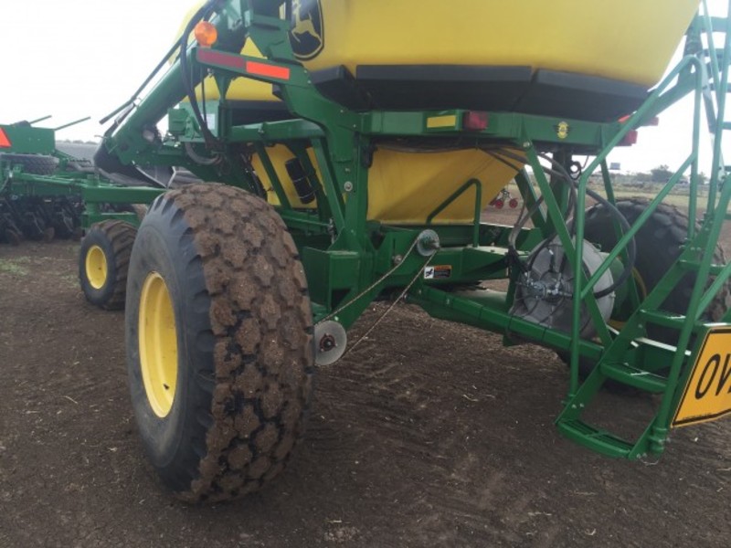 John Deere 1890 Planter, 2010 model, 12 metre (40 foot), 12 inch spacings, 42 x single disc units, air kit with blockage sensors, D-Cup diffusers, trailing John Deere 1910 air cart, tow behind, 270 bushel, 7 tonne capacity, load/unload auger, spare parts, located near Coonamble NSW, price includes GST.