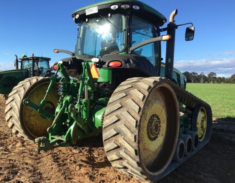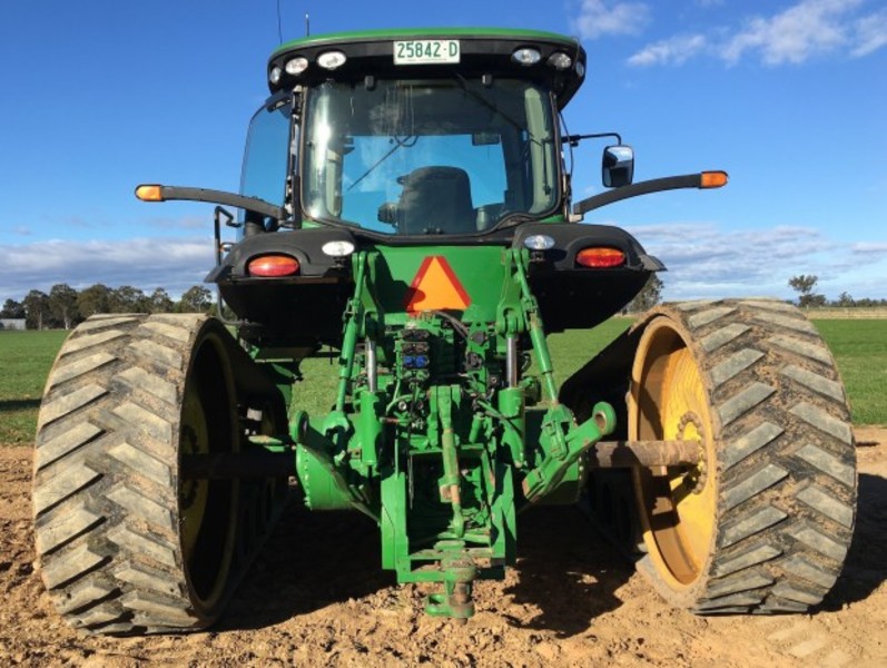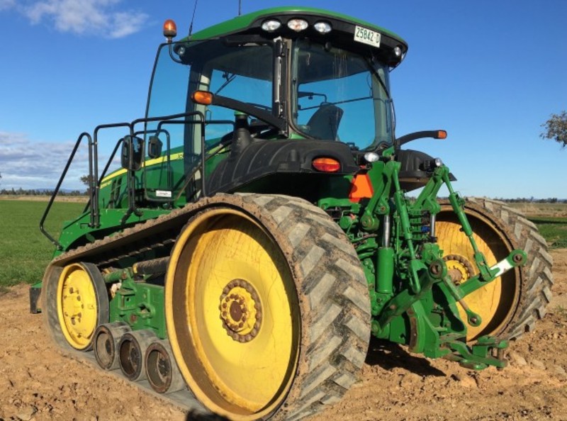 John Deere 8360RT Tractor, 360 horsepower, 5541 hours, IVT transmission, 24 inch tracks 30% rubber, 3m centres but can go to 2 metres, front weight pack, 3 point linkage with quickhitch, 1000 rpm PTO, 4 remotes, Steer ready but GPS gear not included, located near Forbes, price includes GST.