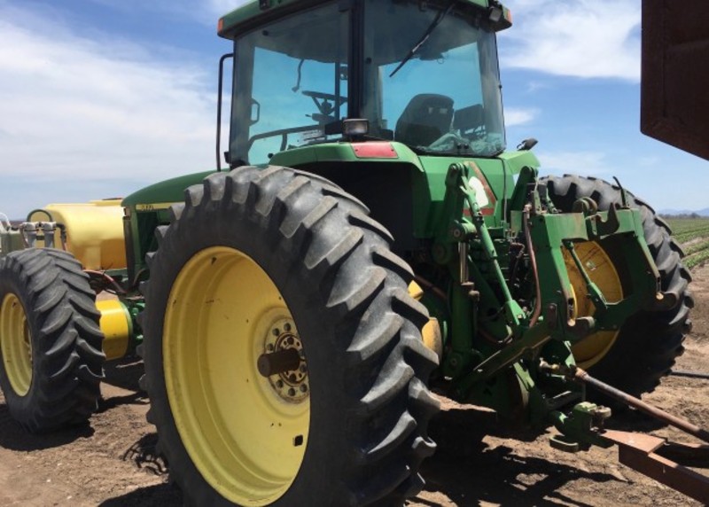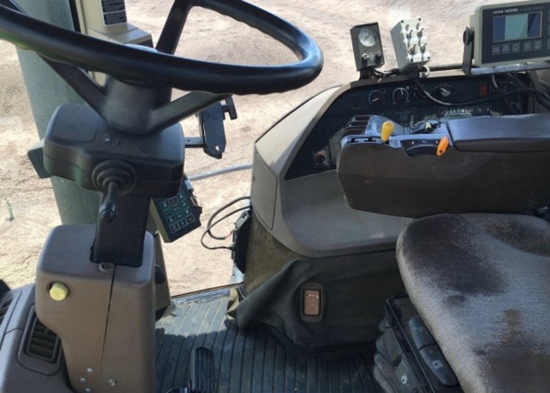 John Deere 8410 Tractor, 280 horsepower, mechanical front wheel drive, 12,300 hours, 3 point linkage with quickhitch, 1000 rpm PTO, 4 remotes, 16/4R speed powershift transmission, front 420/80R30 tyres 75% rubber, rear dual 480/80R46 tyres 75% rubber 2 tyres only, Greenstar ready, steering valve, performance monitor, Hayes 1200 litre front tank and frame, hypro pump, 2 or 3m centres, located near Gunnedah NSW, price includes GST.
