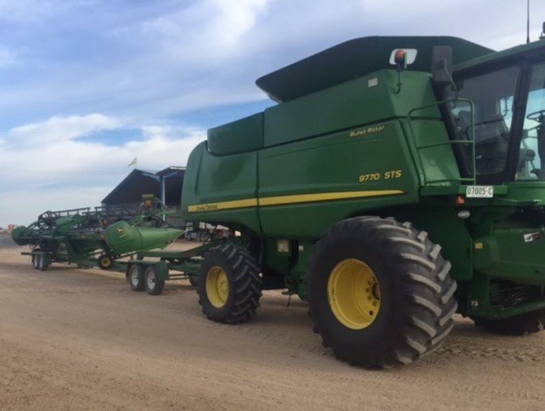 John Deere 9770STS Combine Harvester, 3608 engine hours, 2747 separator hours, 3608 engine hours, 900/60R32 drive tyres 80% rubber, 600/65R28 steer tyres, straw chopper, tow bar, John Deere 640D draper front, 40ft, pick up reel, located near Goondiwindi Qld, price includes GST.