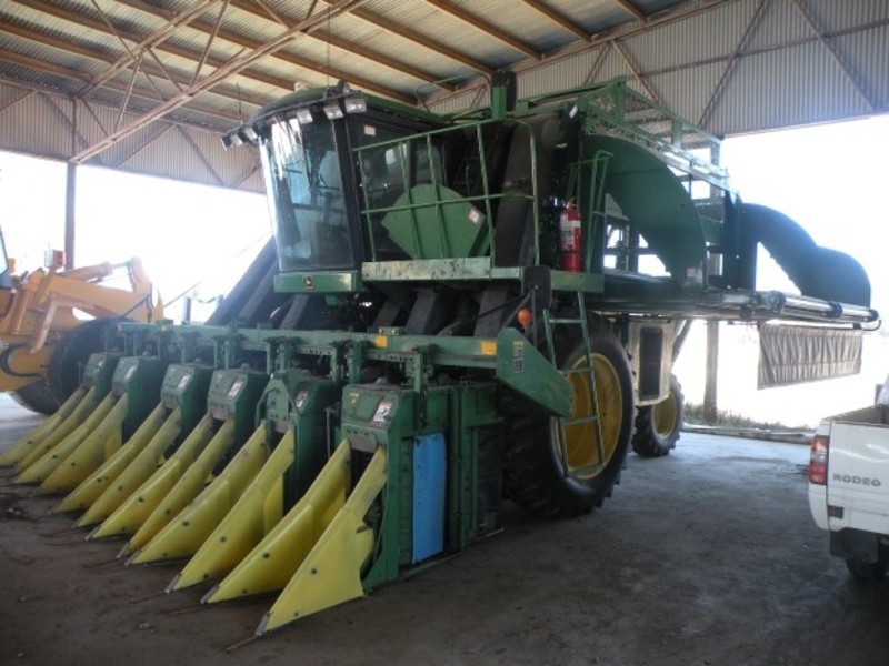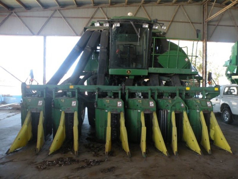 John Deere 9976 Cotton Picker, 6 row, 2800 fan hours, dual wheels, rowtrak, basket extension, door extension, made field ready 2 years ago and not used, ag leader yield monitor, located near Jerilderie, price includes GST