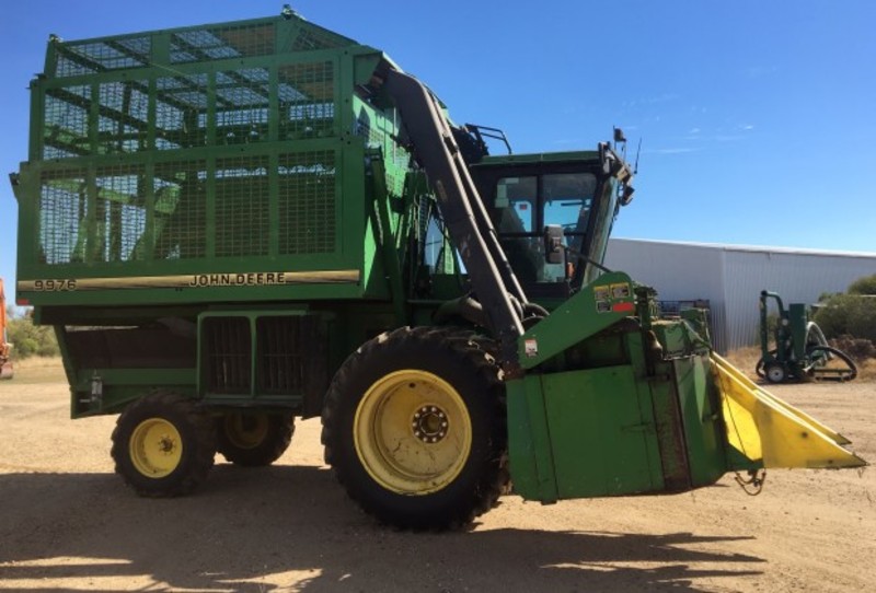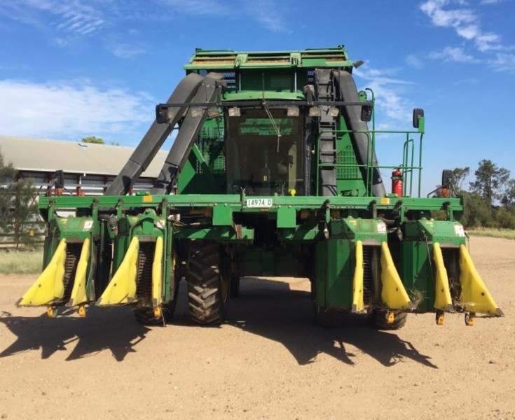 John Deere 9976 Cotton Pickers, 4 row picker, 3701 engine hours, 2718 fan hours, 6 row toolbar/unload door and step platform, set up for double skip cotton, rowtrak, basket extensions, dual drive tyres, located near Moree NSW, price includes GST.