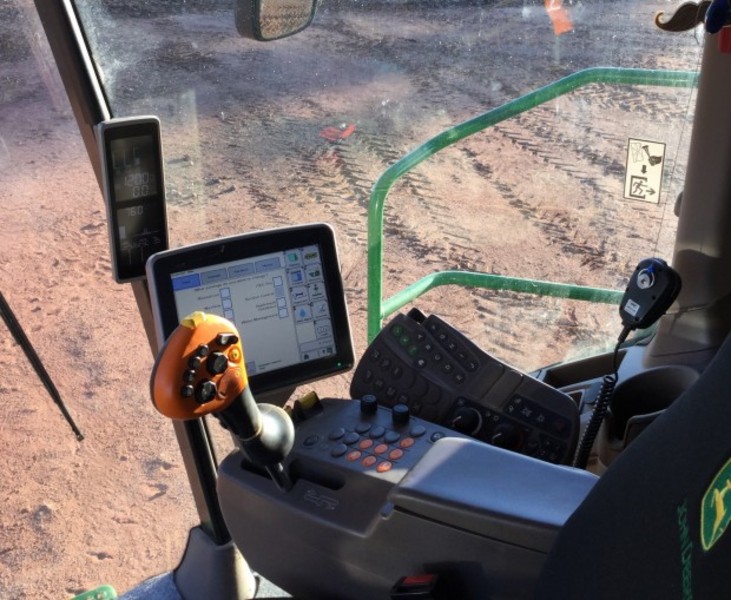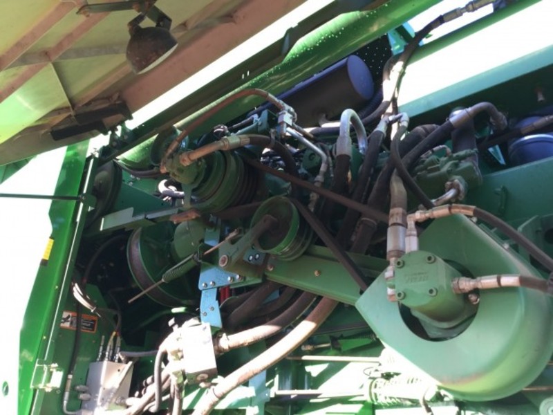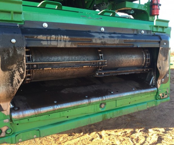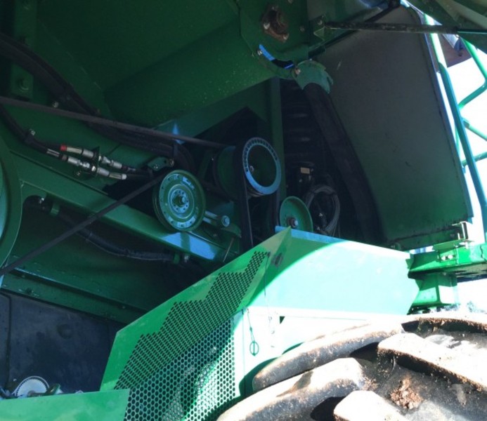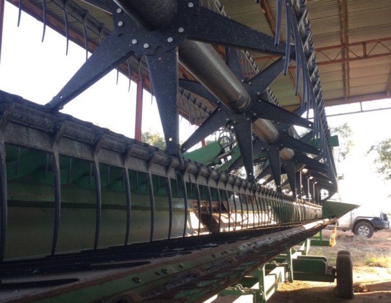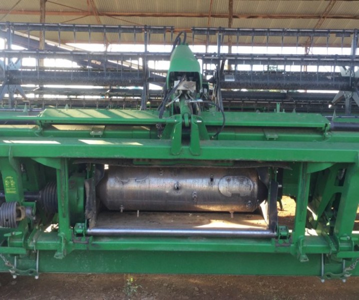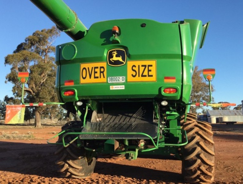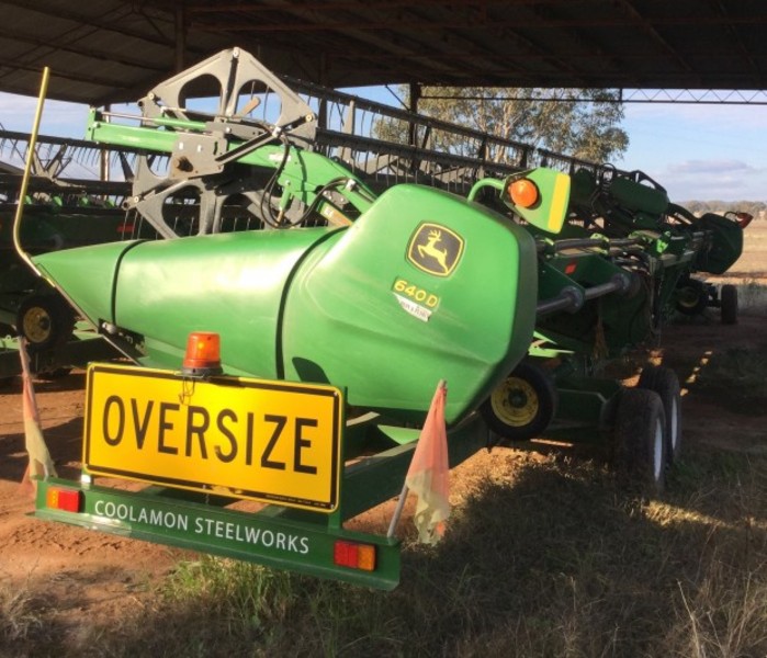 John Deere S690 Combine Harvester, 2014 model, 1293 engine hours, 935 separator hours, power folding grain tank, premium residue straw chopper, premium cab with seat covers, premium audio. 900/60R32 single drive tyres 70% rubber, 3 metre centers, rear 750/65R26 tyres 65% rubber, John Deere 2630 display mounted on armrest, no receiver or auto trac activation, JD link compatible, extended wear package and small wire concaves, 26ft unloading auger, John Deere 640D front, draper, pickup reel, 12 metre, comes with Coolamon steelworks trailer with flashing light and indicators, located near Balldale NSW, price includes GST.