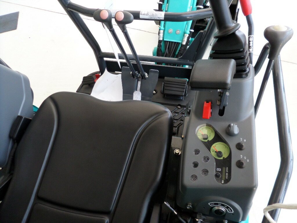 When the crawlers are retracted, the SK17SR can access narrow openings about 1 m wide. The rear swing radius is only 660 mm and the extended crawler width is 1,320 mm, allowing the counterweight to turn within the crawler width. Tonnes: 1-2 -- Operating Weight: 1,740 kg -- Dimensions: 1.28 x 3.45 x 2.3 m -- Dig depth: 2.2 m -- Bucket capacity: 0.044 m3 ISO heaped -- Engine Power: 11.7 kW {15.9 PS} /2,200 min-1 {rpm} (ISO14396) -- Machine mass: 1,650 kg -- Choice Of Buckets available. Please call for more info.