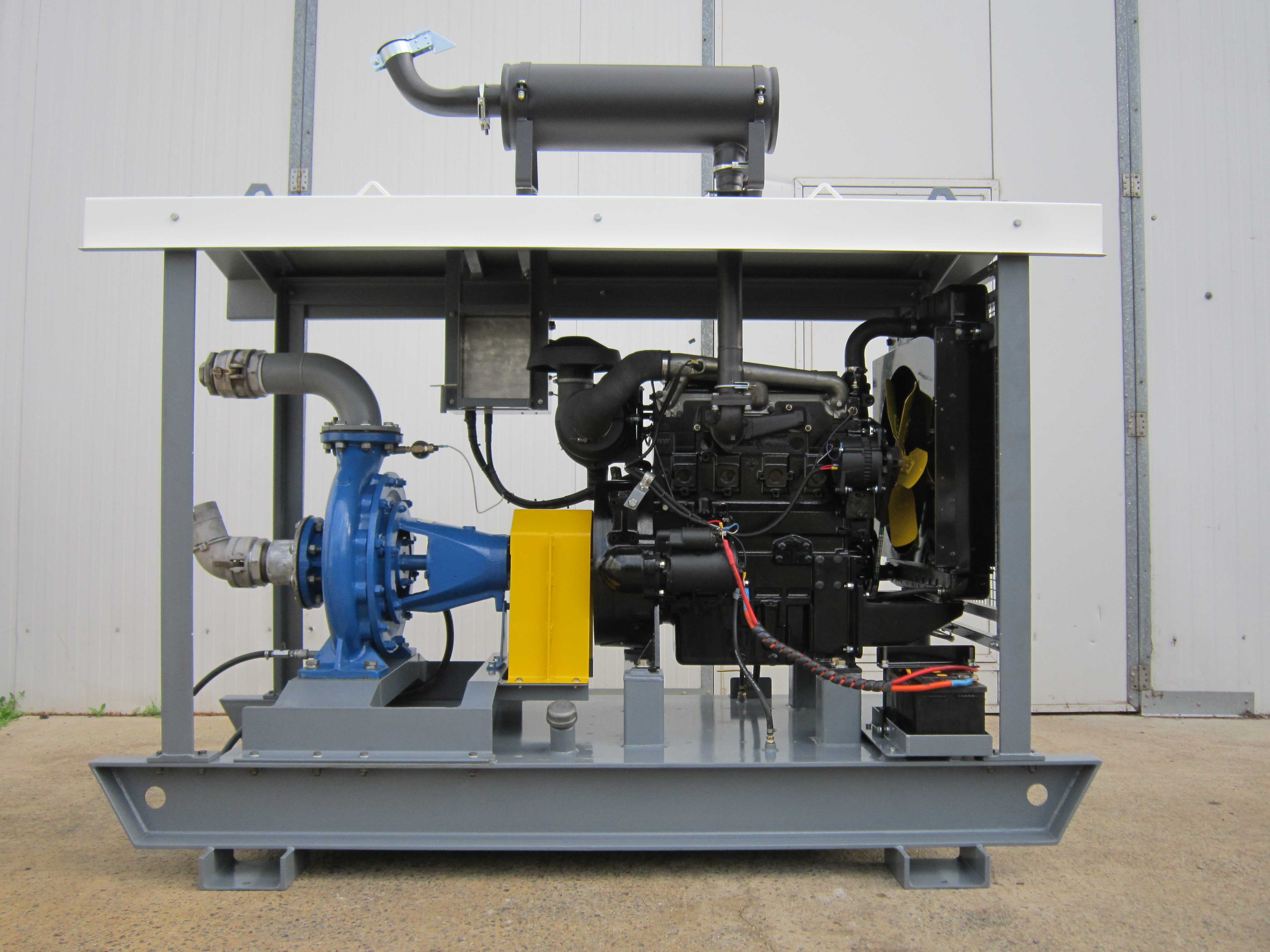 4.41 four cylinder naturally aspirated diesel engine driving a 5 x 4 Indeng centrifugal pump 365mm impeller, base tank, roof, shutdowns and 24 hour timer.
