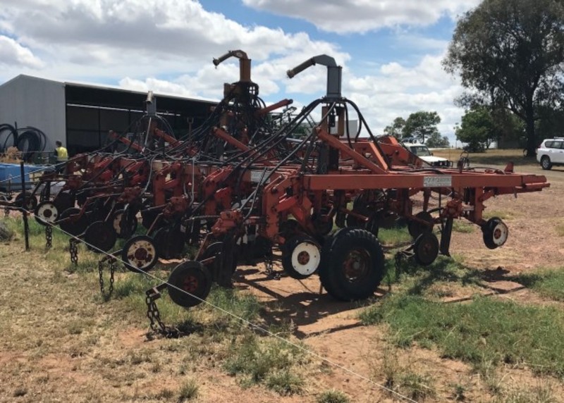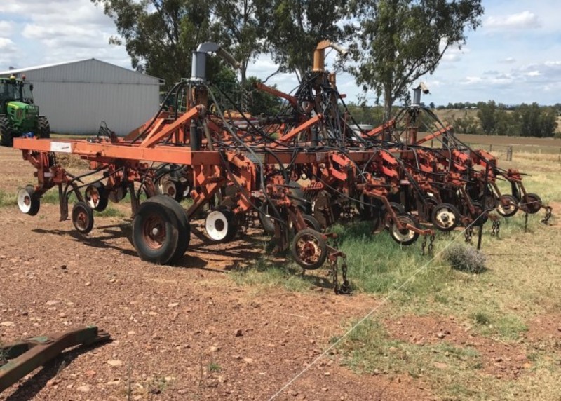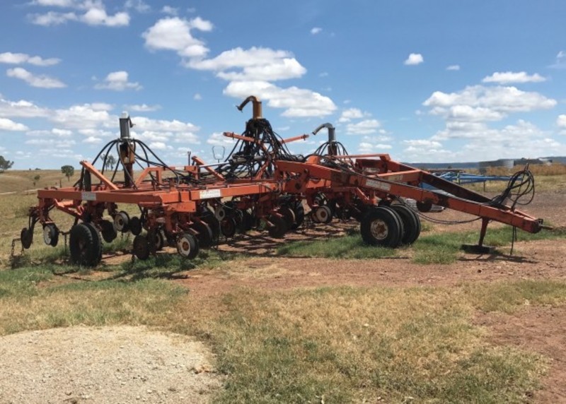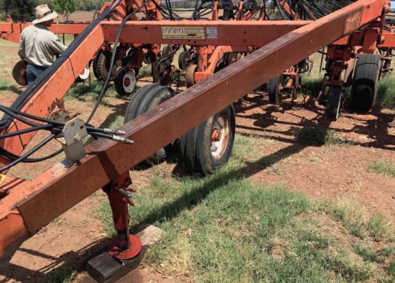 Rogro Ground Hound Planter, trailing, 9 metre folding toolbar, 24 x parallelogram tyne units, 15 inch spacing, spring release, coulters, press wheels, covering chains, 3 x Gyral primary hydraulic distributor heads, 1 x Gyral small seeds distributor head, floating hitch, air seeder hitch, some spares, located near Warialda NSW, price includes GST.