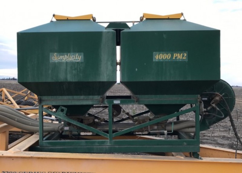 Simplicity 4000 PM2 Air Seeder, 2 bin, 4000 litre, hydraulic fan drive, shaft drive meters, approx 2000 model, monitor and wiring harness, low volume meter kit as well, located near Dalby Qld, price includes GST.<br><br>For more information on this piece of equipment please contact Scot McColl 0488057206 or Michael Buck 0428054644. For other quality used equipment please visit our website www.buckequipment.com.au