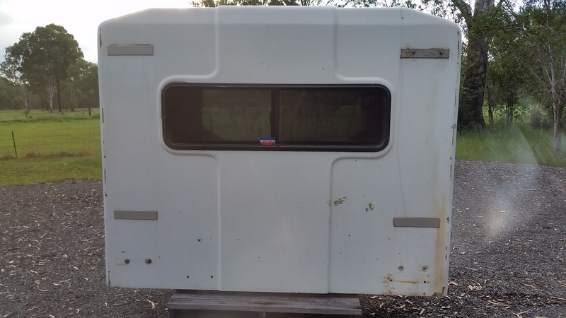 made by Sleekline industries. Interior very good, mounting points and under bunk toolbox area perfect, and exterior overall good condition.