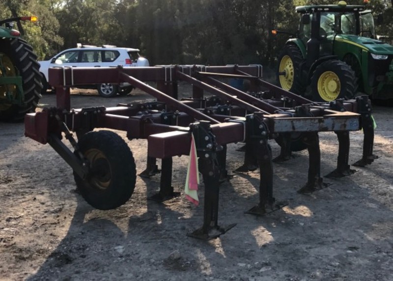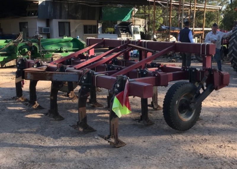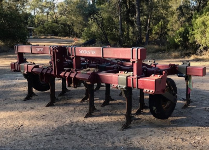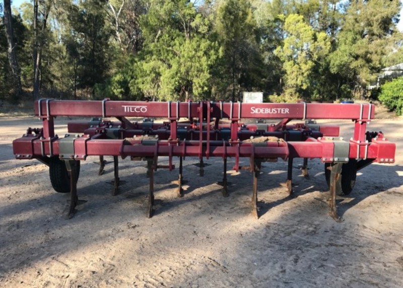 Tilco Sidebuster Ripper, 13 tyne, 4.5 metre toolbar, 3 bar deep, toolbar gauge wheels, rear furrowers, air seeder hitch, rear tynes are adjustable, front 2 rows of tynes are non-adjustable, cat 3 point hitch attachment, located near Goondiwindi Qld, price includes GST.