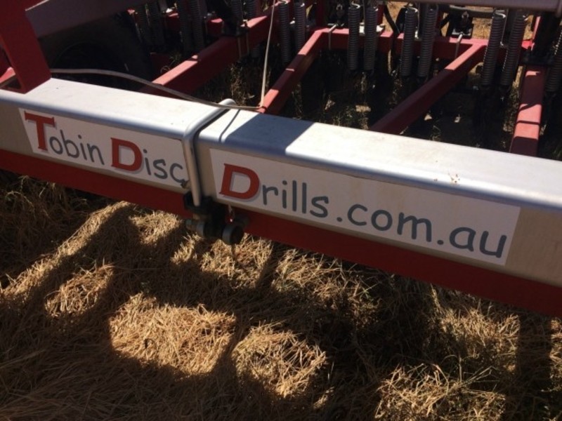 Tobin Disc Drills 40.15 planter, 2012 model, 12 metre 3 section folding toolbar, trailing, 15 inch spacings, single disc planting units, hydraulic down pressure on planting units, done 8000 acres, can plant at high speeds, full set of spare discs and other spares, air kit with diffusers, second air kit not included, located near Goondiwindi Qld, price includes GST.