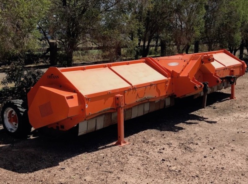 TTQ Trojan Mulcher, 2016 model, 6 metre cut, 3 point linkage attachment, PTO drive, 4 gauge wheels, low use with only 2500 acres approx, parking stands, very good condition, located near Goondiwindi Qld, price includes GST.